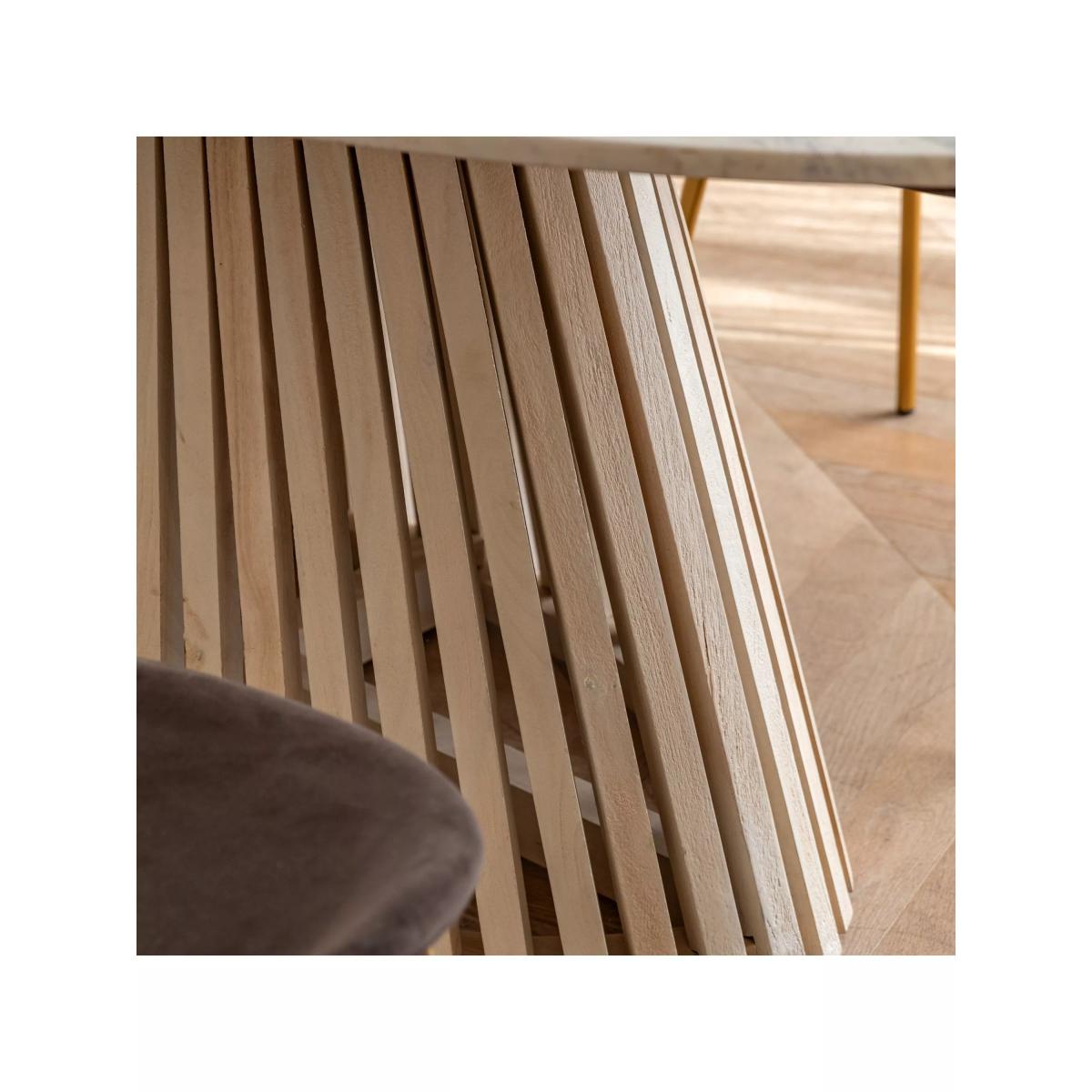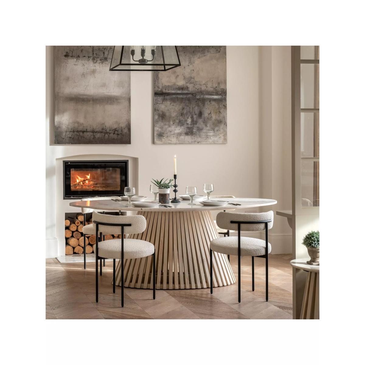 I’m a fan of the Tempe oval table for its clean lines and solid marble-effect top, which sits neatly on that open slatted ash base. It works equally well in Scandi-inspired, coastal or contemporary schemes, grounding light-filled spaces without looking heavy. Styling-wise, keep it simple with a slim runner and a couple of low vases in muted tones - this way you’ll still highlight the tabletop’s subtle veining. Pair with slender-legged chairs in muted greys or soft pastels to maintain an airy feel, and add a woven rug underneath to define the dining area and soften acoustics.