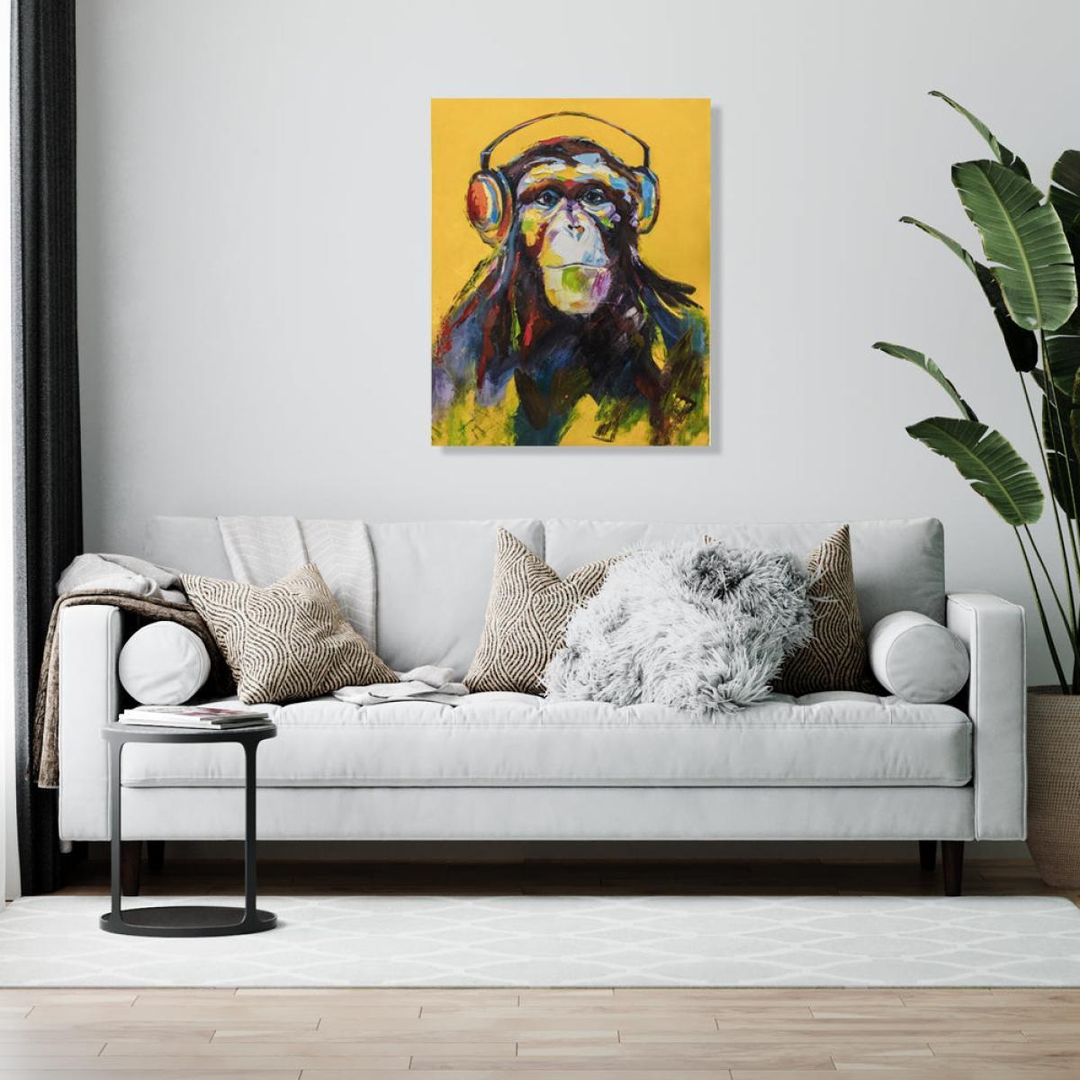 Art can immediately introduce a unique sense of character into your space. If you are looking for the perfect piece to complete a lively living area or fun gallery wall, the. Through The Ape Vine art canvas from Gallery Direct is packed full of personality. The bold mustard yellow background allows the free-flowing brushstrokes that form a beautiful portrait of an ape wearing headphones to shine, celebrating both art and nature in the process. With flashes of colour throughout, this piece will look striking when placed in a variety of different spaces, including contemporary living rooms, cool bedrooms, and retro-inspired home offices. *Moot Trading Ltd is not a lender and acts only as an introducer. The credit product is provided by Klarna Bank AB (publ). Credit is only available to permanent UK residents aged 18 and over, subject to status. Terms and conditions apply. Please note that the following products are not regulated by the FCA: Pay in 30 days and Pay in 3 instalments. Read More.