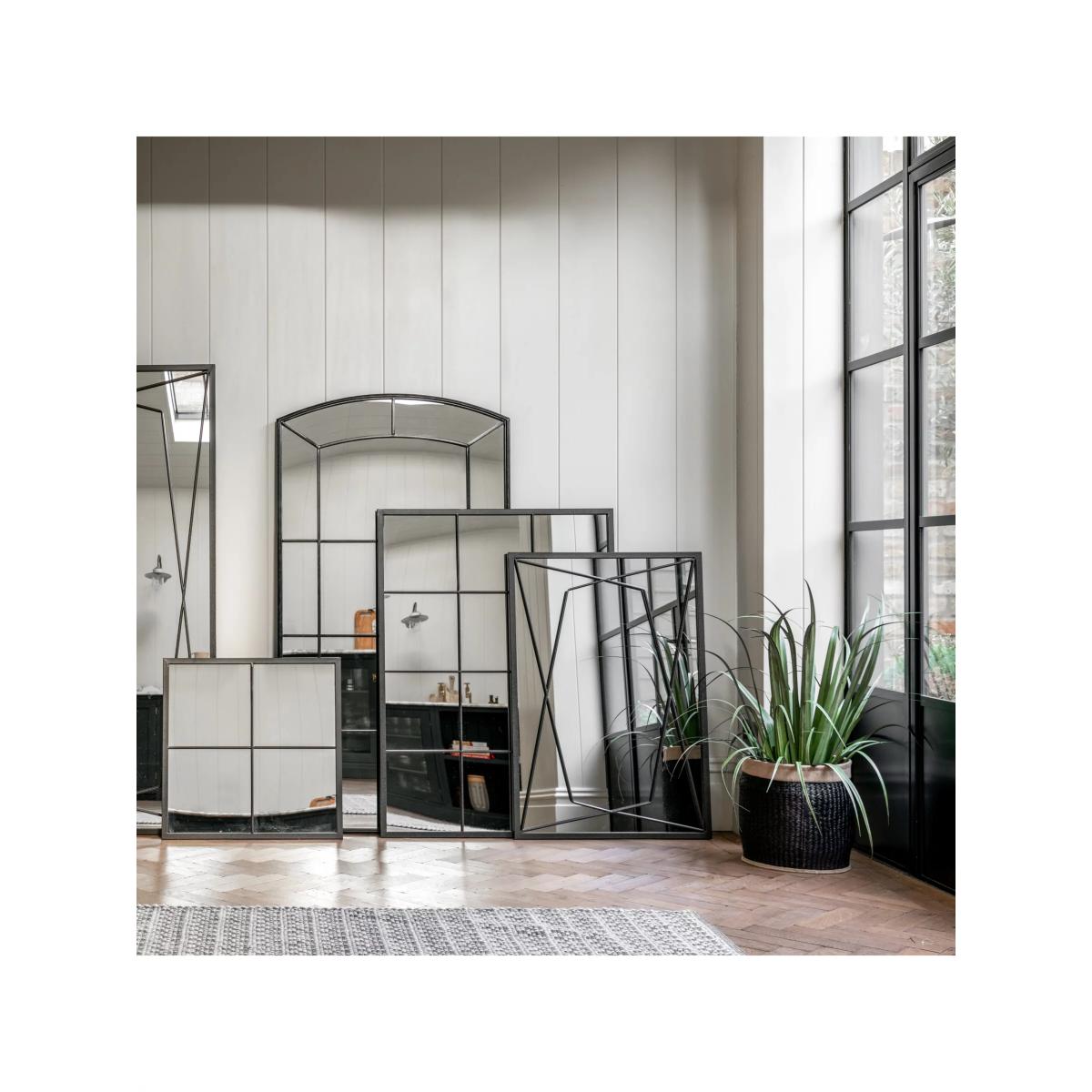 I love this one because of its contemporary take on a classic mirror silhouette. The black metal frame adds a sleek, modern edge that works especially well in minimalist or industrial interiors. It’s versatile enough to hang in a hallway, living room, or bedroom, providing both style and function. For styling tips, consider pairing it with matte black or metallic accessories to enhance its frame, or position it opposite a window to maximise light and room sense. Remember to keep surrounding decor simple to let the mirror’s geometric frame stand out or balance it with softer textures nearby to soften the overall look. This piece is great for creating a focal point without overwhelming a space.