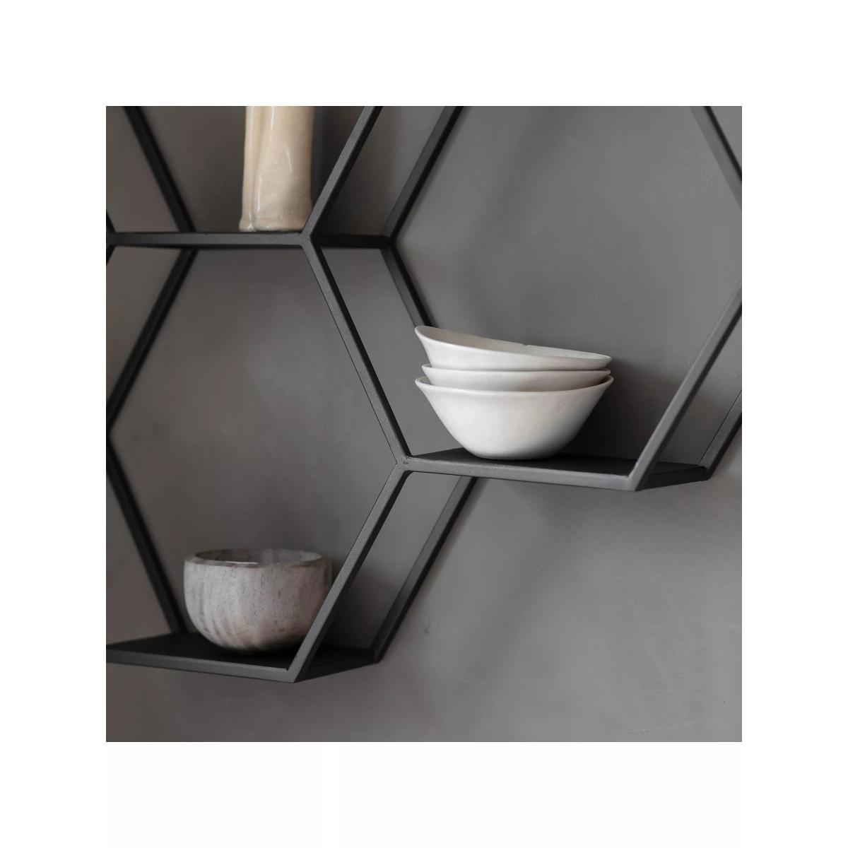 I’m a big fan of the honeycomb shelf for its clean, geometric lines and matte-black metal frame - it brings a subtle industrial edge without feeling heavy. It works equally well in urban lofts, Scandi-inspired living rooms or sleek home offices, especially as a focal point over a desk or sofa. For styling, mix in small potted succulents or air plants, a few artfully arranged paperbacks, and one or two ceramics in muted tones for contrast. Leave some cells empty to prevent visual clutter and vary heights by stacking thin coffee-table books under decorative objects. In a hallway or snug, hang a pair at differing heights to create a gallery-style display that’s both functional and tidy.