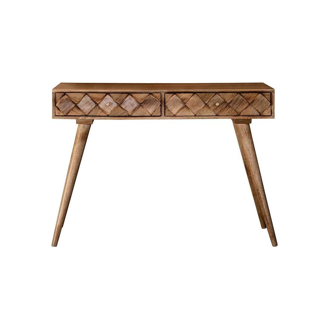 This Desk console with its functional two drawers is ideal to use as a hall console or a very stylish desk - with the strong Indian design features and unique finish makes this piece an on trend but relaxed family piece. *Moot Trading Ltd is not a lender and acts only as an introducer. The credit product is provided by Klarna Bank AB (publ). Credit is only available to permanent UK residents aged 18 and over, subject to status. Terms and conditions apply. Please note that the following products are not regulated by the FCA: Pay in 30 days and Pay in 3 instalments. Read More.