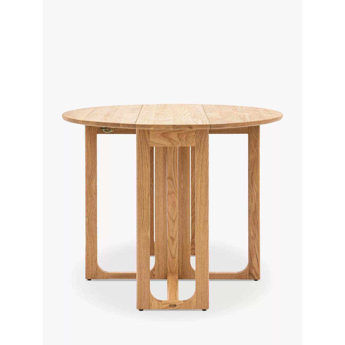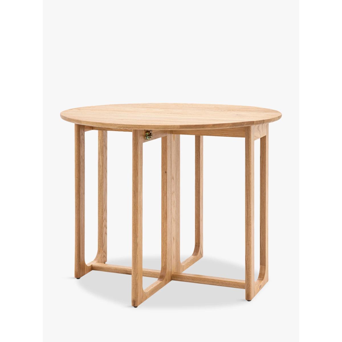 Crafted from the finest oak and structural oak veneers where practical, this stunning folding dining table pairs perfectly with the matching chairs (available separately). The table, which folds for added convenience, offers an elegant design with its simple round top and beautifully shaped underframe. Matching pieces are available. Want to see it first? You may want to see and get a feel for the furniture in one of our shops before ordering. We'll be able to tell you where the range you'd like to view is on display.