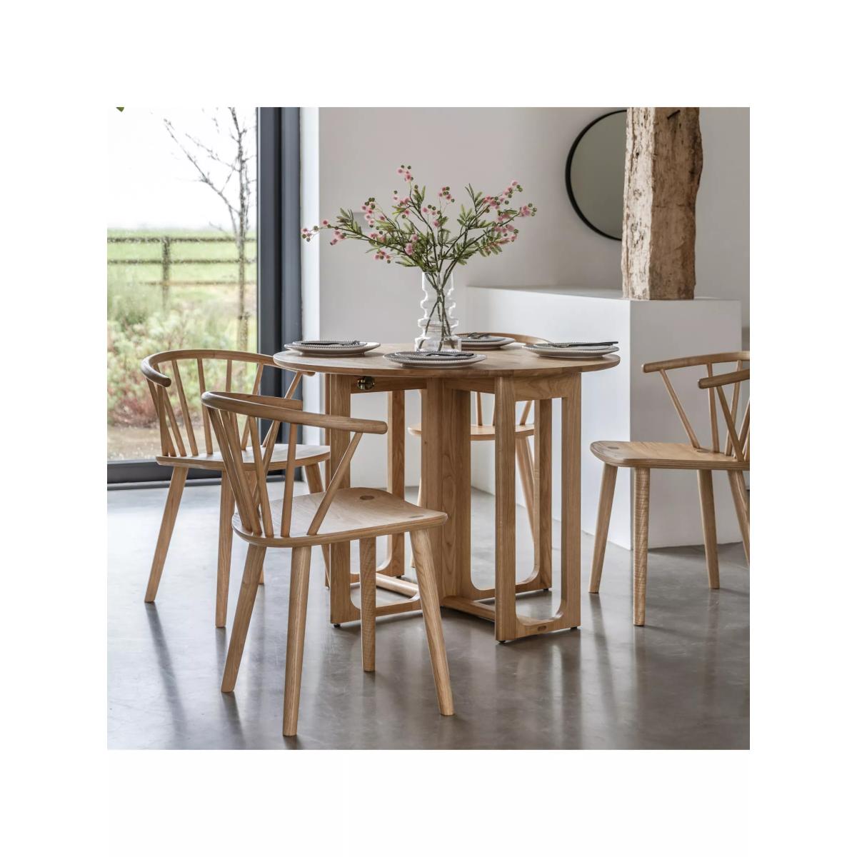 I really like the Vail folding round dining table because of its sleek, minimalist design and natural wood finish, which make it versatile for various interiors. It works particularly well in Scandi-inspired schemes, casual modern kitchens, or compact dining spaces where flexibility is key. Practical styling tips include pairing it with simple, neutral chairs for a clean look or adding colourful, eclectic chairs for a more relaxed vibe. When not in use, the fold-away feature makes it perfect for small spaces or multi-purpose rooms, giving you the flexibility to save space without sacrificing style.