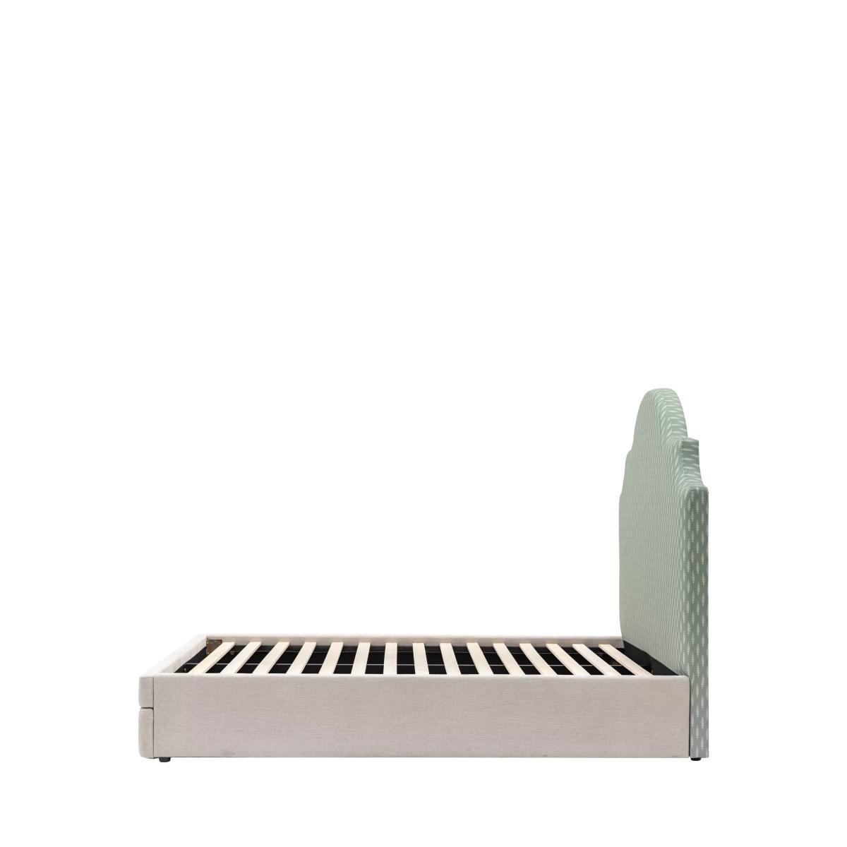 This bed frame is designed with an elegant arched headboard that's upholstered with an intricate green leaf pattern. It will look impressive and timeless in your bedroom, but it's also practical as it features a built-in draw at the foot of the bed which provides ample storage space - ideal if you have limited storage options. See me in-store It's a good idea to get a feel for new furniture before you make a purchase.