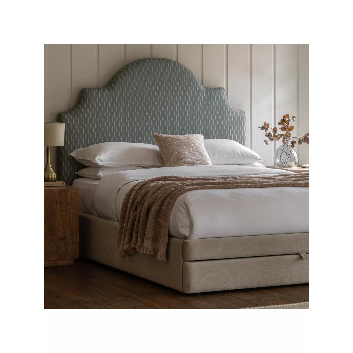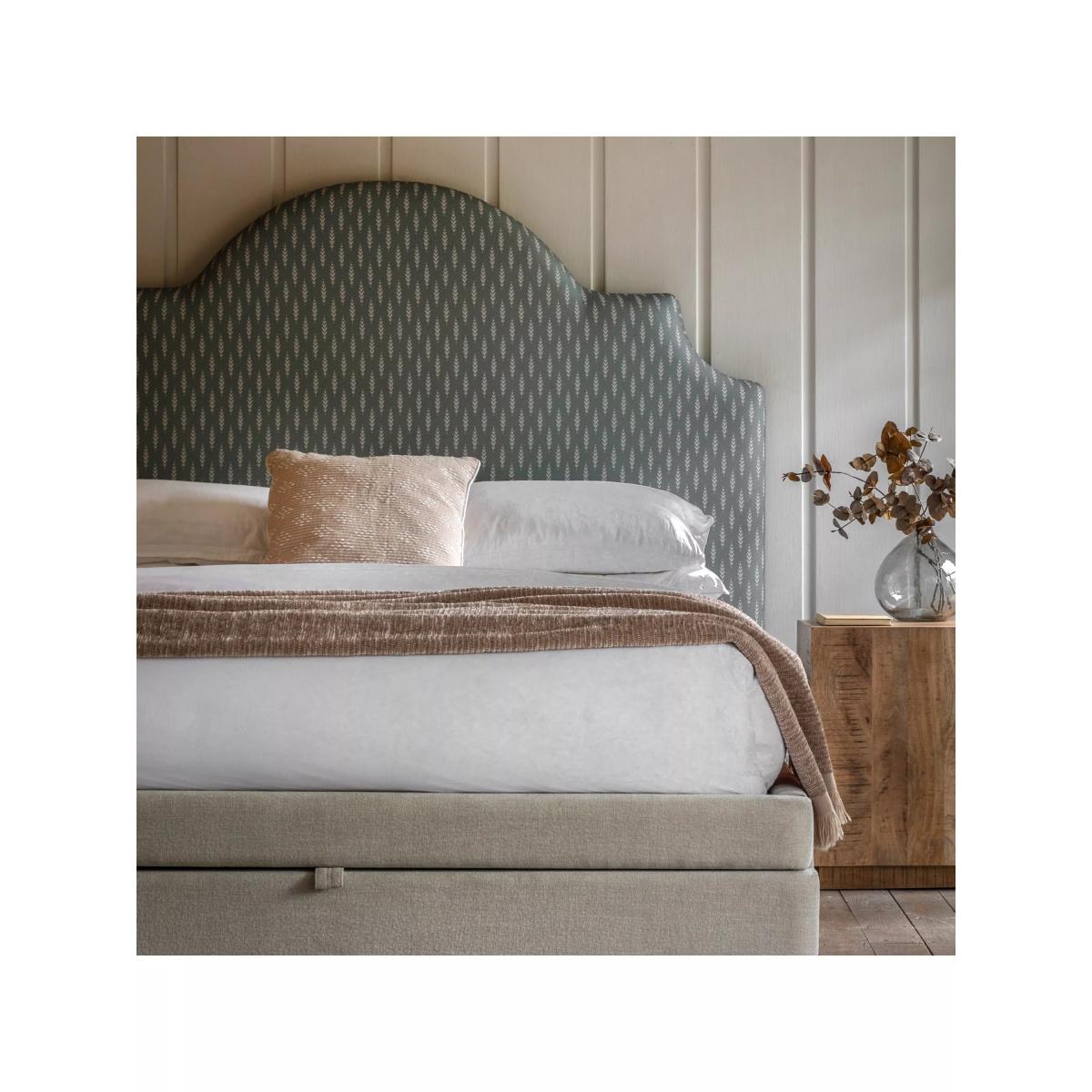 I’m a big fan of this sage-upholstered Wilbury bed for its soft colour and practical under-bed storage drawers - ideal for extra bedding or seasonal clothes. The scalloped headboard brings just enough shape to work in modern Scandi schemes as well as classic country or transitional interiors. For styling, layer crisp white or pale linen bedding to let the sage tone stand out, add a textured throw in neutral grey or cream, and pick bedside tables in light oak or matt black metal for contrast. A low-pile jute rug or soft woollen rug beneath the frame will define the sleeping area, while a couple of simple pot plants and pared-back artwork keep the look fresh without overwhelming the gentle green.