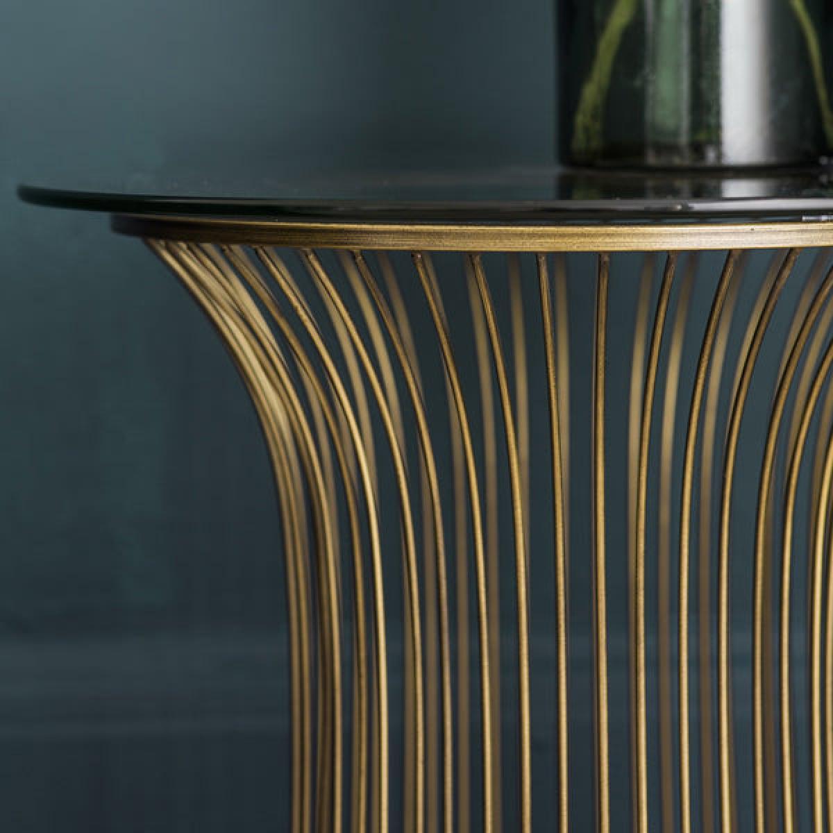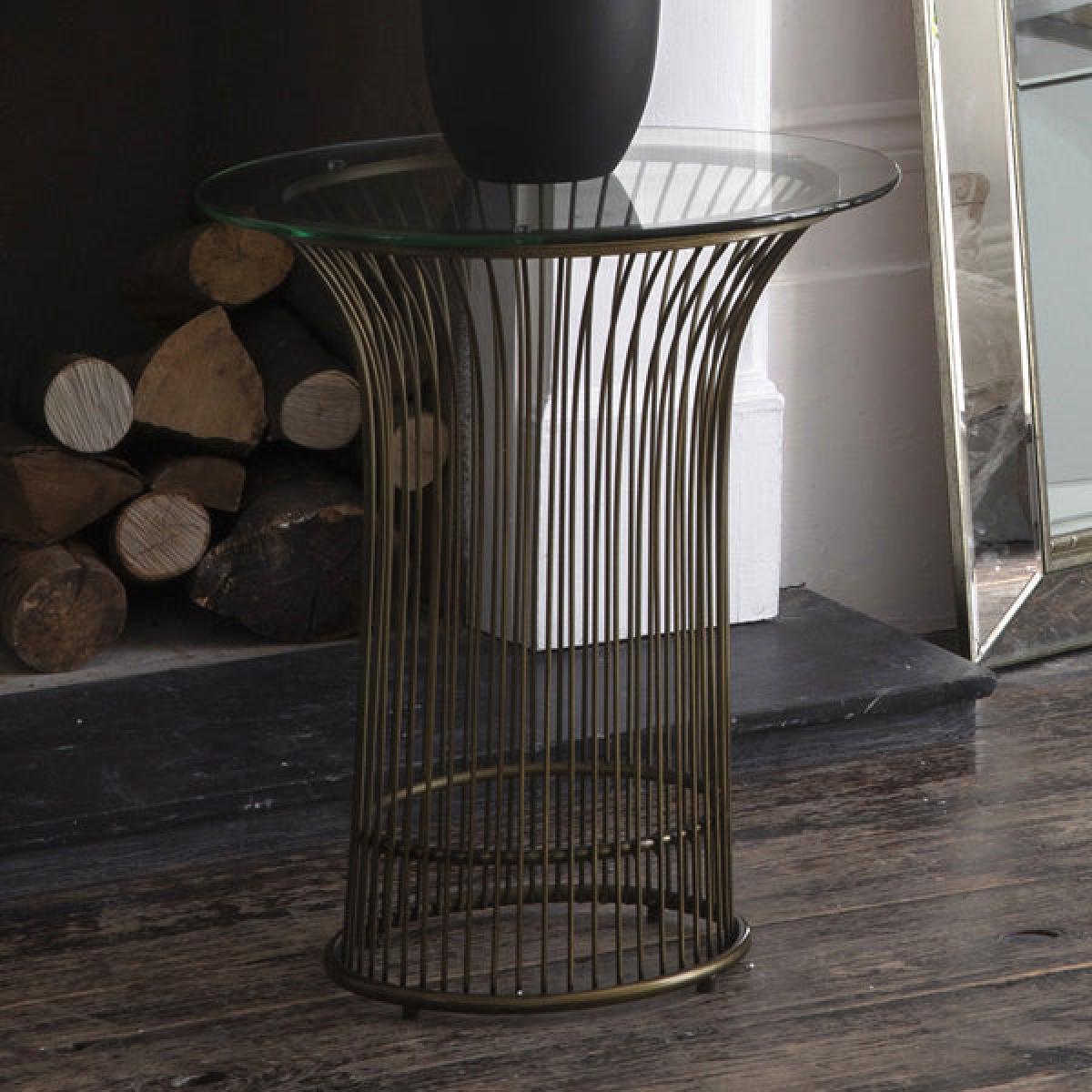 I love this side table for its industrial yet elegant look, making it versatile across various interiors. The bronze finish adds warmth and richness, making it a great accent piece in both modern and more traditional settings. It's perfect next to a sofa or armchair, providing a functional surface for a lamp, books, or decorative objects. For styling tips, consider pairing it with textured cushions or metallic accents to create a layered, sophisticated look. It works well in living rooms, bedrooms, or even entryways, especially when you want a statement piece that combines form with practicality. Keep accessories minimal for a sleek look, or add a small plant or vase for a touch of greenery and personality.