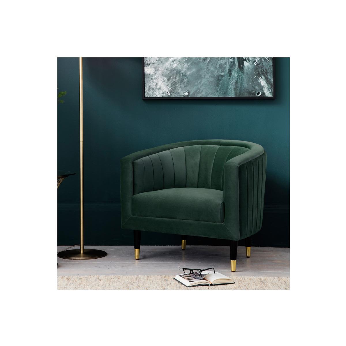 Gallery Green Velvet Armchair with Gold Legs - Serrano
