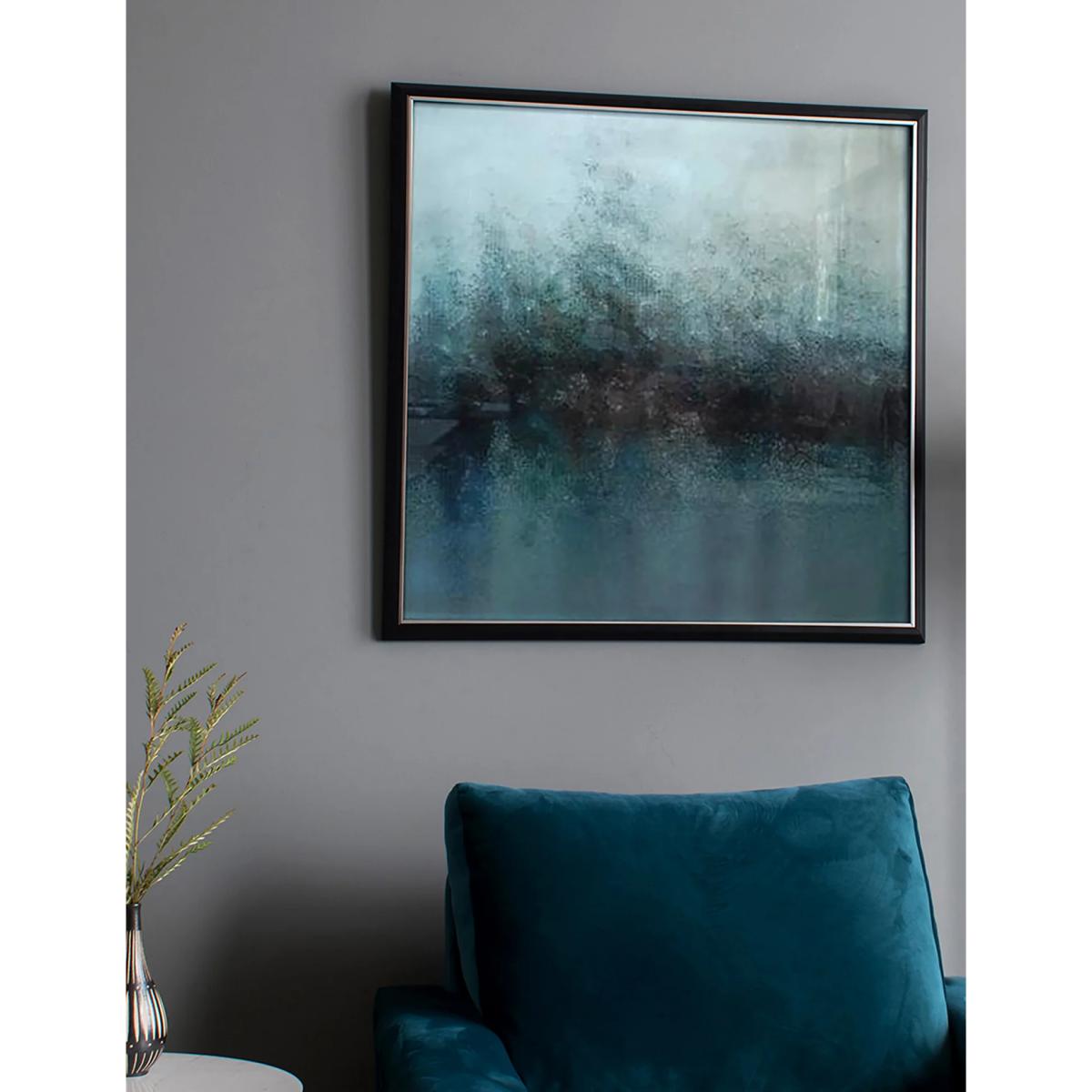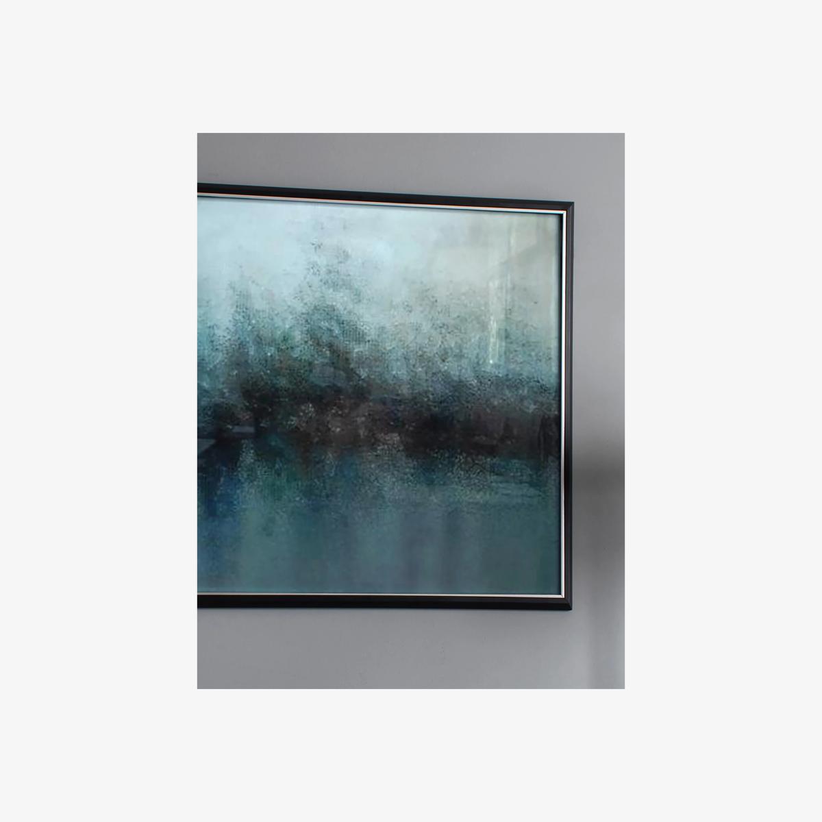 I love this piece for its versatile colour palette and modern aesthetic, making it a great statement in a neutral or contemporary space. The abstract nature and shades of blue lend themselves well to various interiors, from minimalist to coastal-inspired schemes. To style it effectively, consider pairing it with simple furnishings and metallic accents to enhance its sleek frame. It works particularly well above a sofa or console table, where its calming tones can be appreciated, and pairing it with complementary accessories like blue or grey cushions can help create a cohesive look. Practical tip: go for a clean-lined frame and hang it at eye level for maximum impact.