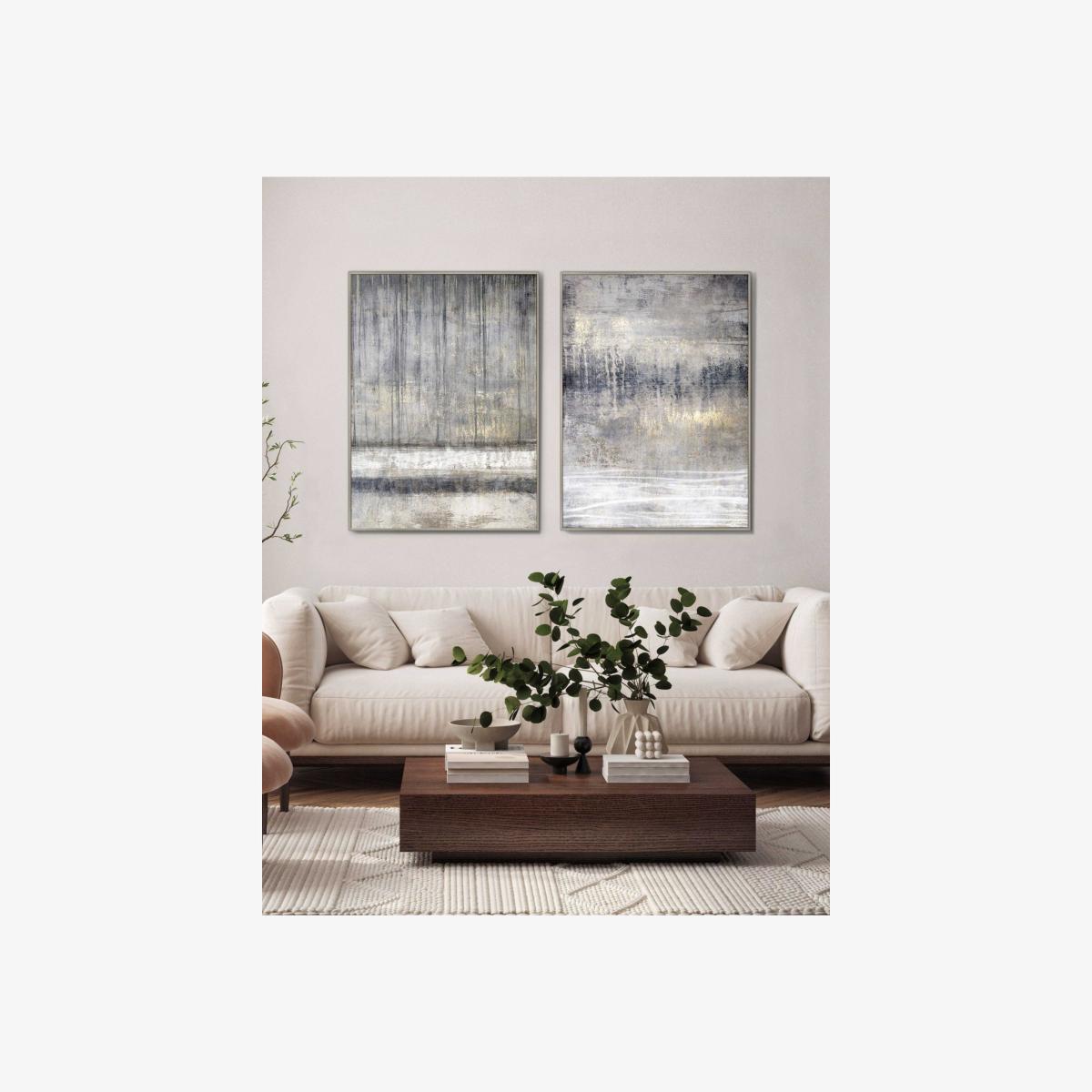 I love the simplicity and subtle texture of the Torrent canvases-they add visual interest without overpowering a room. These would work particularly well in modern or contemporary interiors, especially those with neutral colour schemes. To style them effectively, consider hanging both in a symmetrical layout over a sofa or console table, paired with soft lighting to highlight their textures. Practical tip: they’re versatile enough to complement a variety of colour palettes, so don’t shy away from combining them with slightly warmer or cooler tones in your furnishings for a balanced look. These prints are a great way to add quiet sophistication to living spaces, hallways, or even bedrooms.