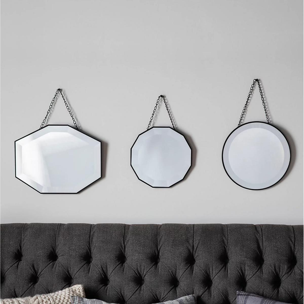 I love how the set of three Haines hanging mirrors offers a versatile and contemporary way to add depth and light to a space. The mix of shapes - octagonal, round, and circular - creates visual interest without feeling cluttered, making it a great choice for both modern and minimalist interiors. These mirrors work particularly well above a sofa or console table, as they can be grouped to create a striking focal point. For styling tips, consider varying the height when hanging to introduce a relaxed vibe, or keep them aligned for a more structured look. Their silver finish makes them adaptable to both cool-toned and warmer decor schemes, adding a touch of understated elegance wherever they’re placed.