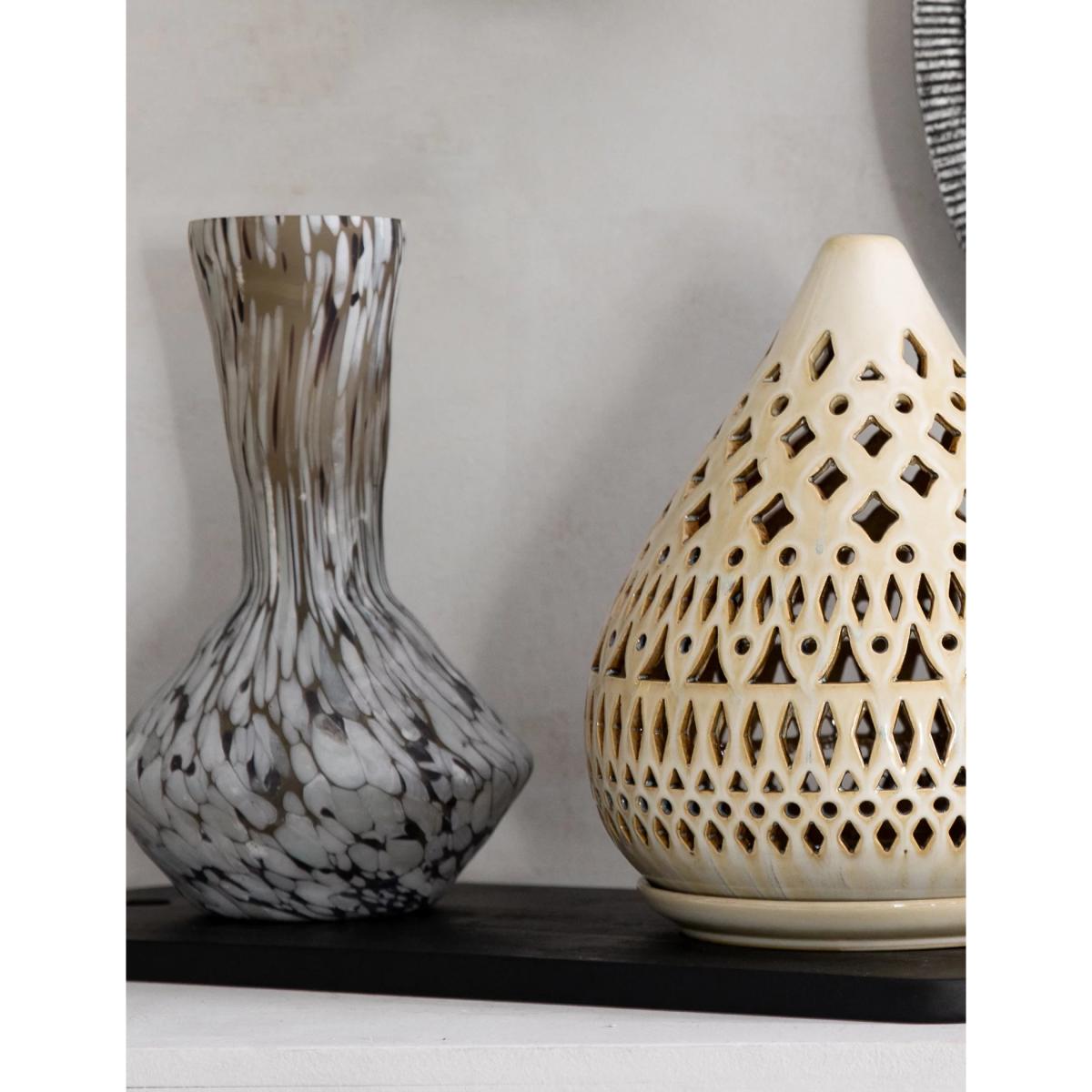 I love this tall glass vase for its striking mottled design and bold black tone, which makes it an instant statement piece. It works particularly well in modern or minimalist interiors, where its unique pattern can add richness without overwhelming the space. Practical styling tips include using it with tall, slender floral arrangements or branches to highlight its height, or showcasing it as a standalone sculptural piece on a console or side table. Its versatile colour also pairs effortlessly with a range of colour palettes, from monochrome schemes to earthy tones, helping to bring texture and sophistication to any room.