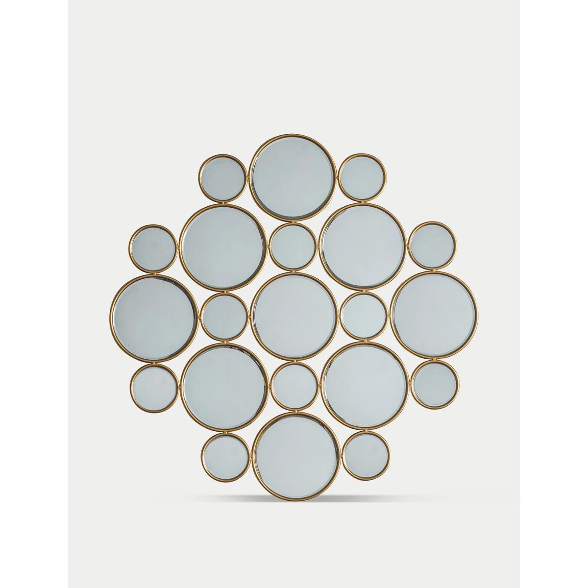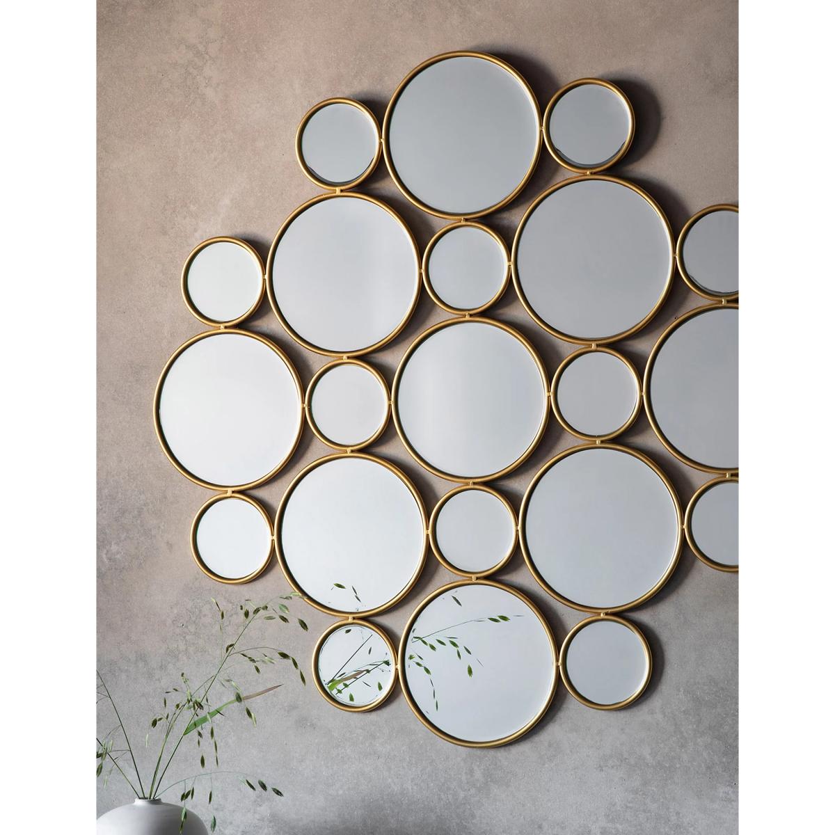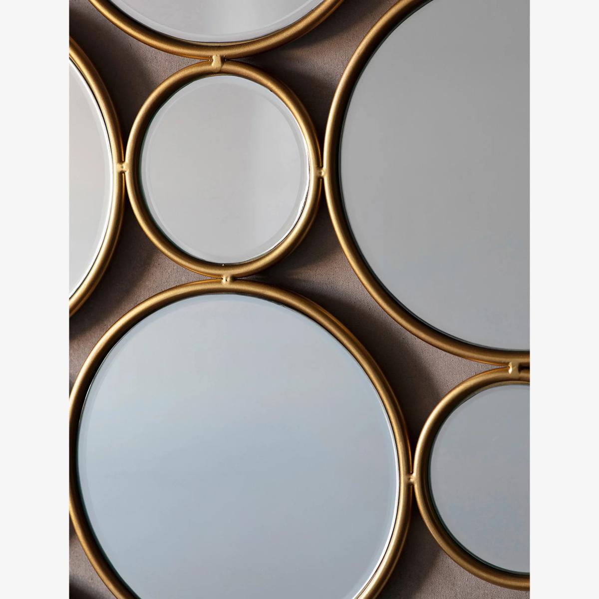 This contemporary mirror from Gallery Home is an ornamental statement piece. It’s made up of rounded decorative mirrors framed by a gold finish for a luxe look.