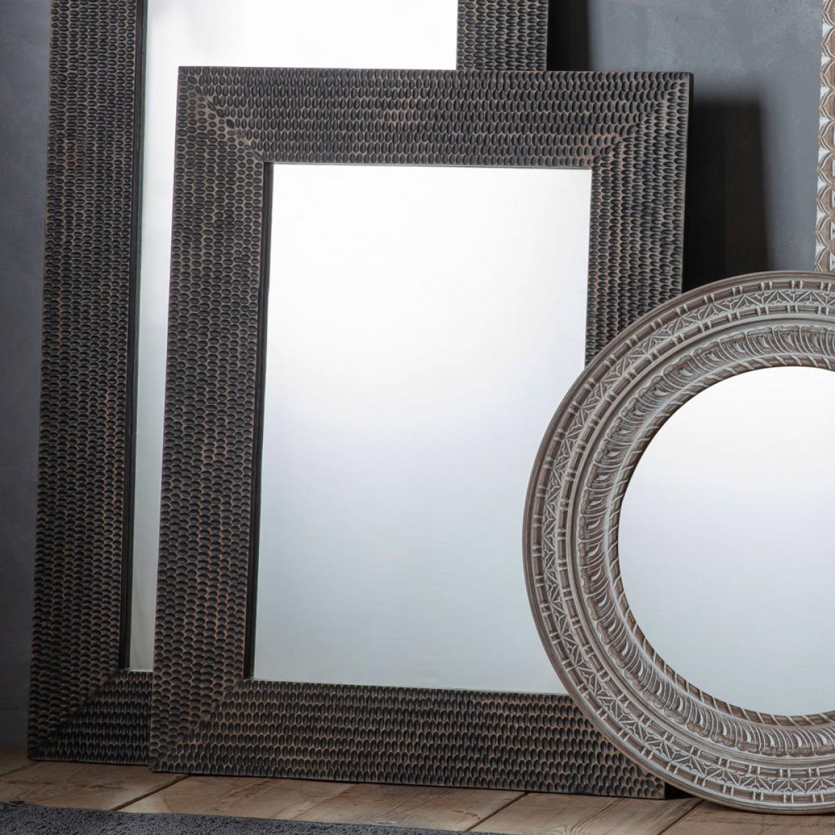 The Akola Black Wall Mirror from Gallery Interiors is not only a practical home accessory; it's also a very aesthetically pleasing piece. This sophisticated rectangle mirror is surrounded by a tactile, charcoal grey thick frame with a delicate imprint, giving it rustic appeal. It's ideal as a leaning mirror in a bedroom or as a showpiece in a lounge or large hallway space. Mirrors are great for reflecting light and giving the illusion of a bigger space and are a must-have in bright and modern homes. However, the Akola mirror design is very versatile, making it also look great in a more traditional home. Dimensions: S: W: 91 x D: 3.5 x H: 122cm L: W: 91 x D: 3.5 x H: 183 cm Materials: Mango Wood, Glass, MDFOrientation: Portrait or Landscape Fixing Type: Keyhole. Notes:This mirrors weighs 25kg and 35kg respectively. Please take this into account when mounting on a wall and ensure both the fixings and wall are strong enough to hold its weight