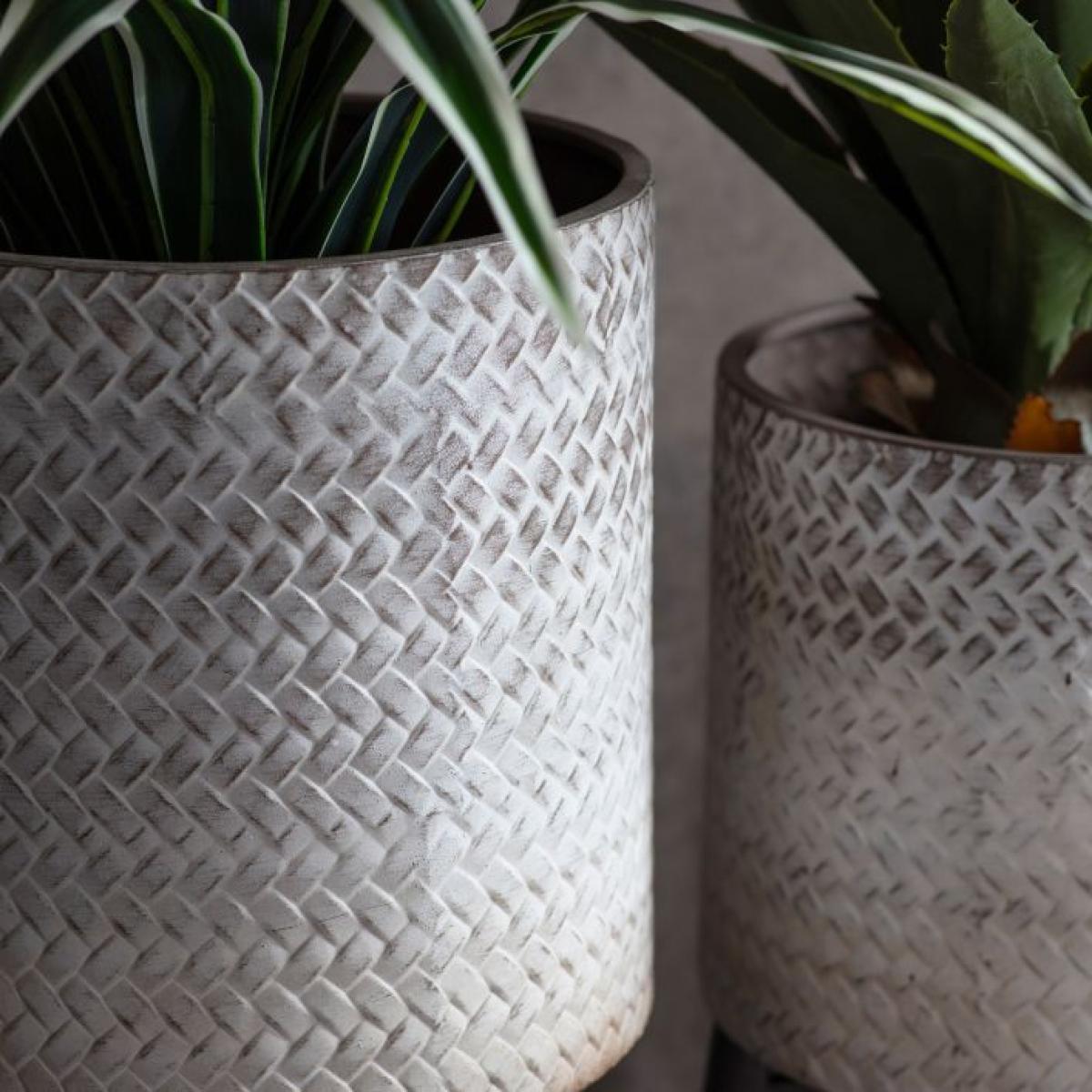This very voguish Albion metal planter from renowned brand Gallery Direct offers you the opportunity to provide a stunning indoor plant with the stage it deserves. The striking metallic and textured planter has a decidedly industrial feel that accentuates its living contents through the power of contrast. The whole is lifted from the floor on an elegant Scandinavian style stool to give it maximum impact in a modern home. Allow visitors to admire the planter alongside similar contemporary décor to give it maximum effect. The Albion planter also makes a great wedding, anniversary or birthday gift for a friend or cherished colleague. Outlet items may show some signs of minor cosmetic imperfections Dimensions: W: 24 x D: 24 x H: 51 cm Materials: MetalDistressed/ Whitewash