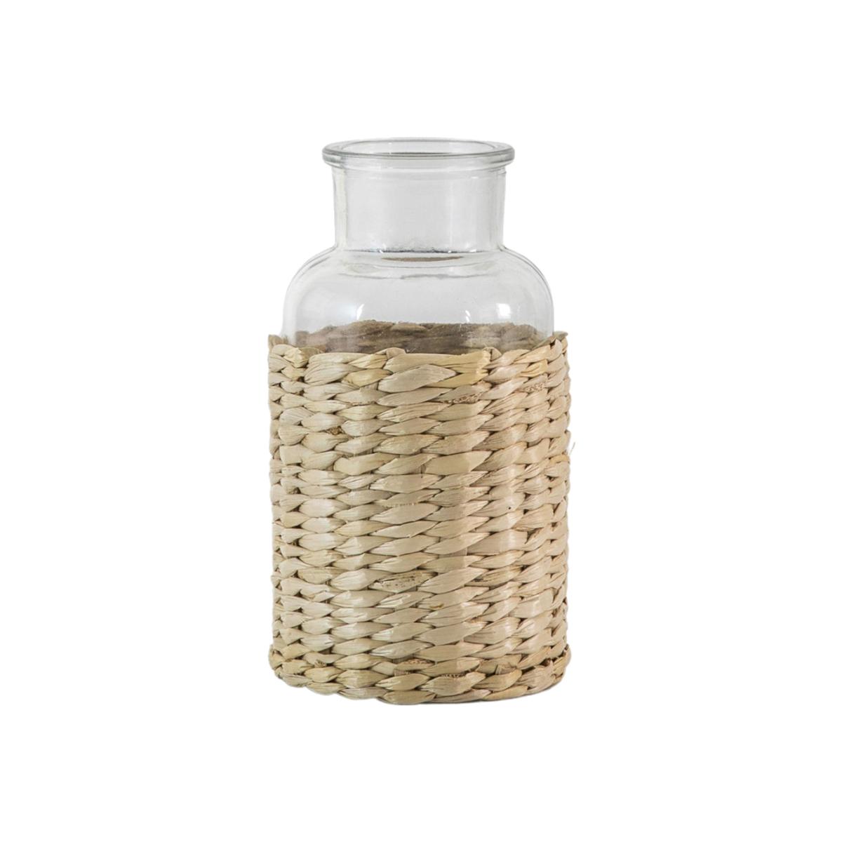 This combination of clear glass and handwoven water hyacinth bring a touch of bohemian style into any room. Complete the look of this large vase with a handful of dried stems. Dimensions: Small: H. View More. This combination of clear glass and handwoven water hyacinth bring a touch of bohemian style into any room. Complete the look of this large vase with a handful of dried stems.