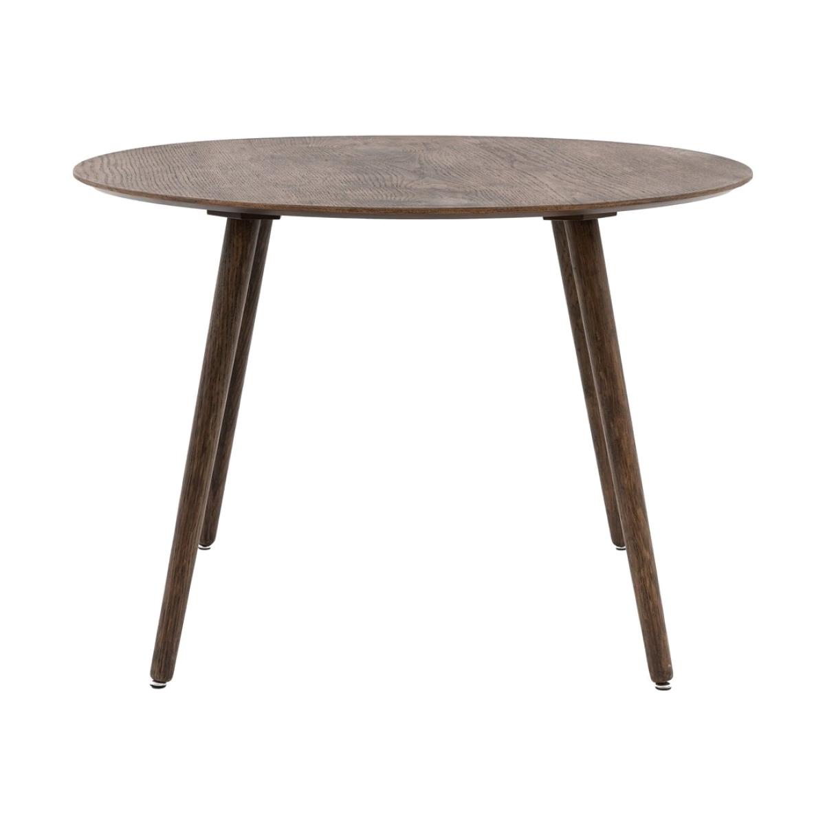 Offering retro style with a contemporary touch, this beautiful round dining table is crafted from oak veneers and rubberwood with a smoked oak finish. The table is also available in a natural finish, and matching pieces are available. Additional Information