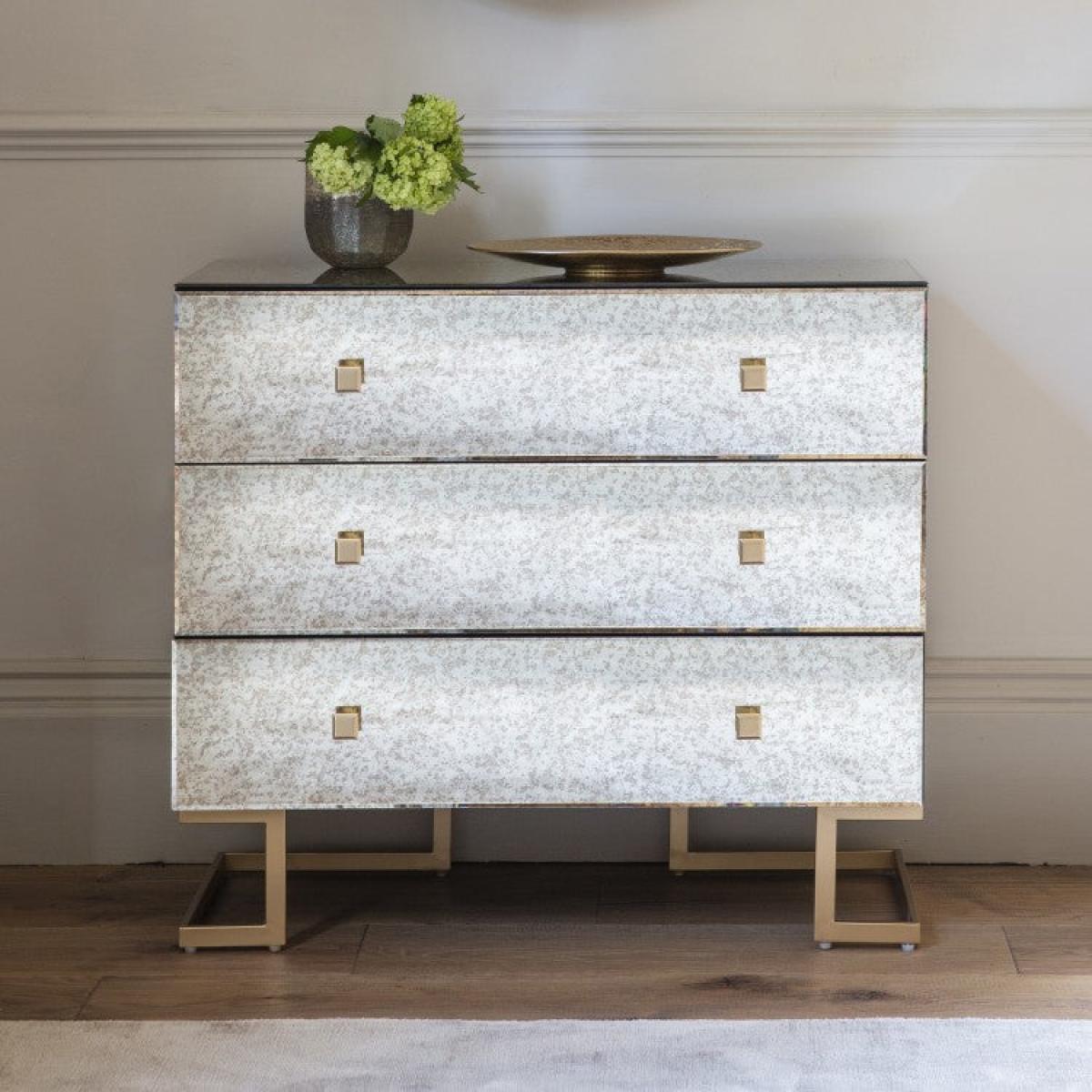 Create a statement with the Amberley 3 Drawer Wide Chest. This piece instantly brings style and sophistication to your space, with it champagne meets silver finish and mirrored attention to detail. View More. Create a statement with the Amberley 3 Drawer Wide Chest. This piece instantly brings style and sophistication to your space, with it champagne. Meets silver. Finish and mirrored attention to detail. Effortlessly bringing elegance to the home, whilst bringing practicality with it's handy drawers, what more could you wish for?.