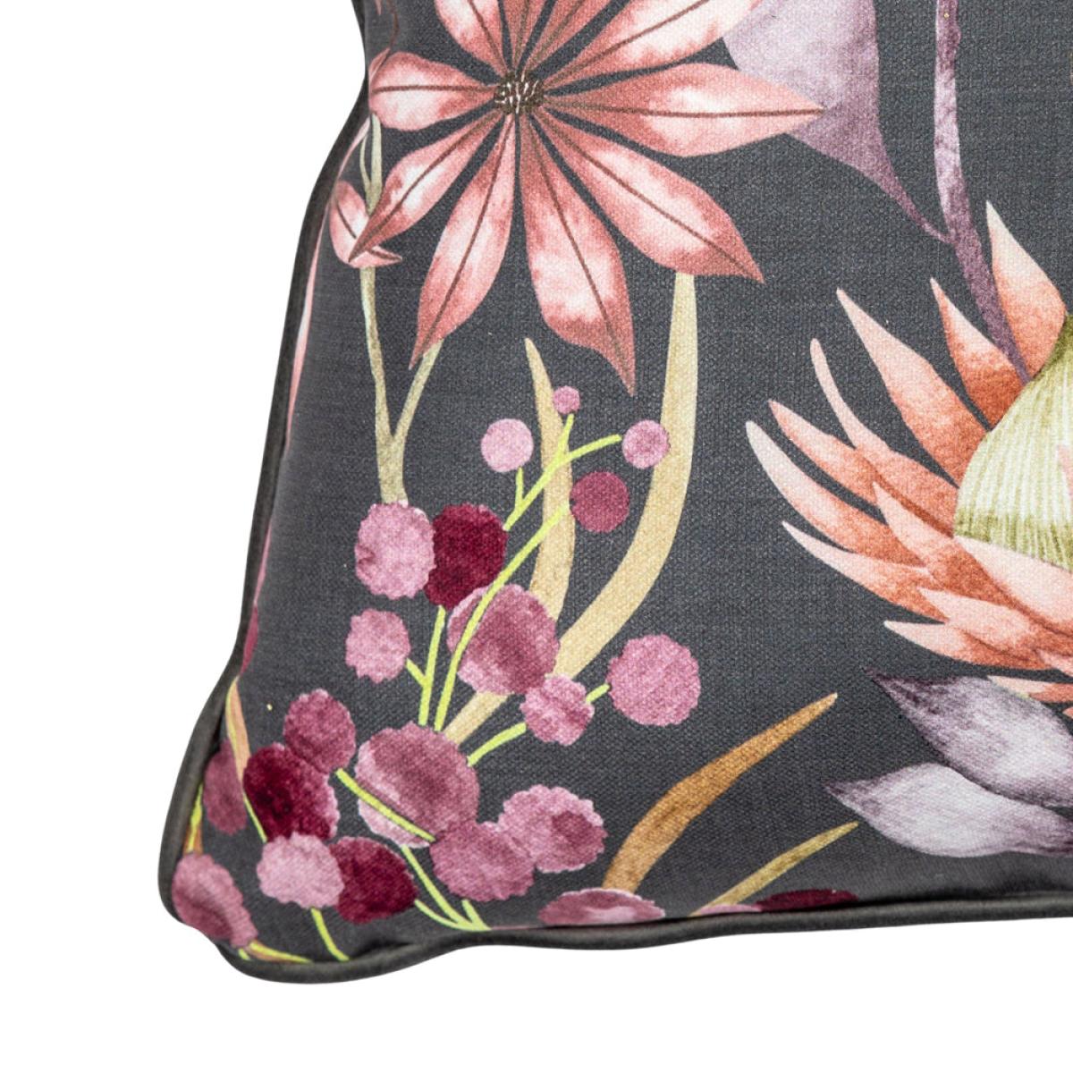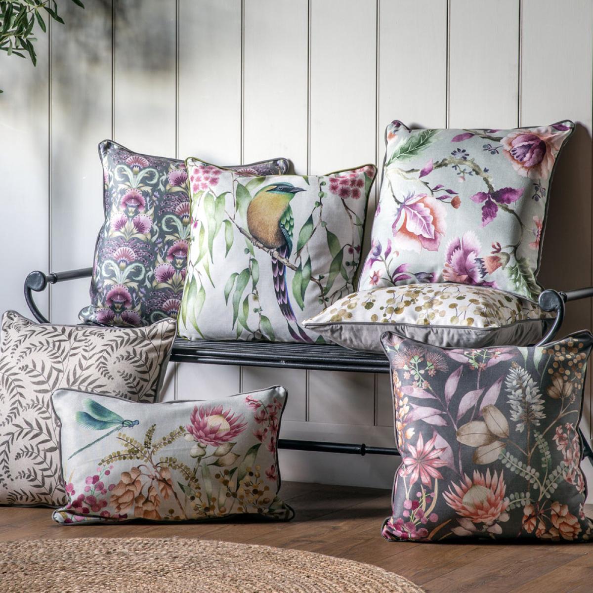 A stunningly detailed addition to any lounge, bedroom or living space, the Gallery Interiors Heritage Floral Bird Cushion is a must for those looking to enhance their home. An elegant and timeless design featuring an intricate dragonfly in beautiful shades of blue and green set against the dark background creates a truly vibrant look that will bring life to any space. Finished with bright contrast piping and a plain and perfectly complementary reverse, this is a versatile cushion that will fit a wide variety of colour themes. The breath-taking cushion is 15cm high with a width of 55cm and depth of 55cm. Dimensions: H: 15 x W: 55 x D: 55 cm Materials: Cotton / Velvet Assembly Required