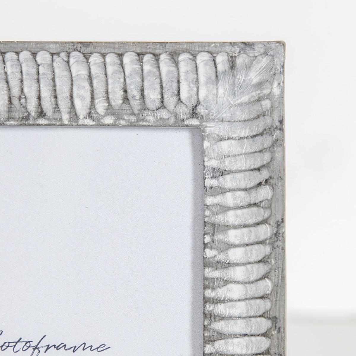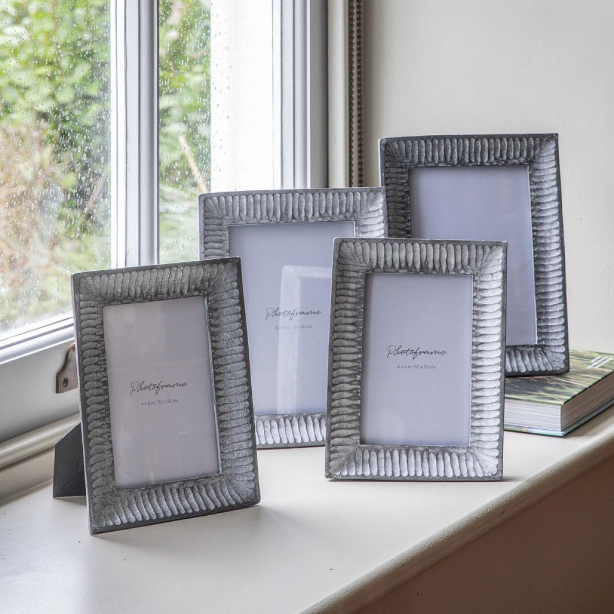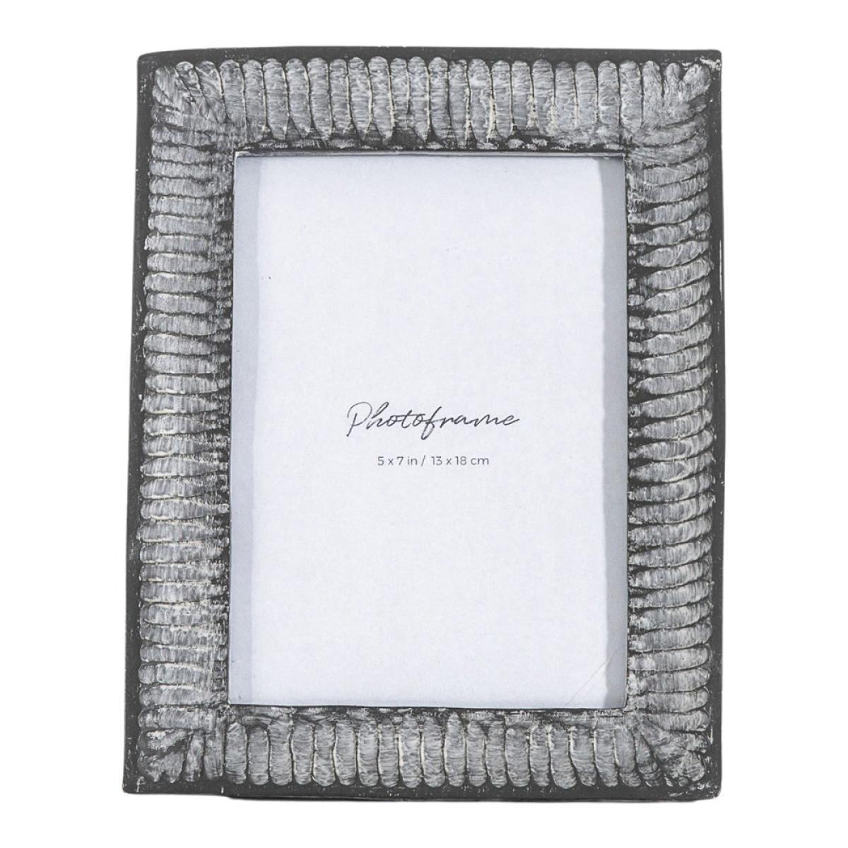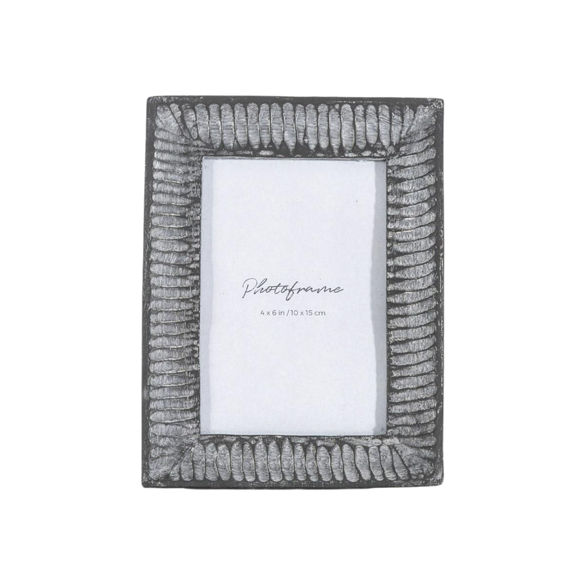 This beautiful photo frame can be used to house your most memorable photos. Use it to display pictures of friends or family or remember a wonderful event or holiday. It is perfect for the mantlepiece or bedside table and displays a 4" x 6" photograph. The frame has been created using a soft charcoal resin and features an organic chisel effect that makes the edging look beautiful but does not distract the eye from the photo. This gorgeous frame is sold separately but could be added to if you want to create a set or a theme that runs throughout your home. Dimensions:Small: H: 20 x W: 15 x D: 2 cm. Large: H: 23 x W: 18 x D: 2 cm Materials: Polyresin / Glass Assembly Required