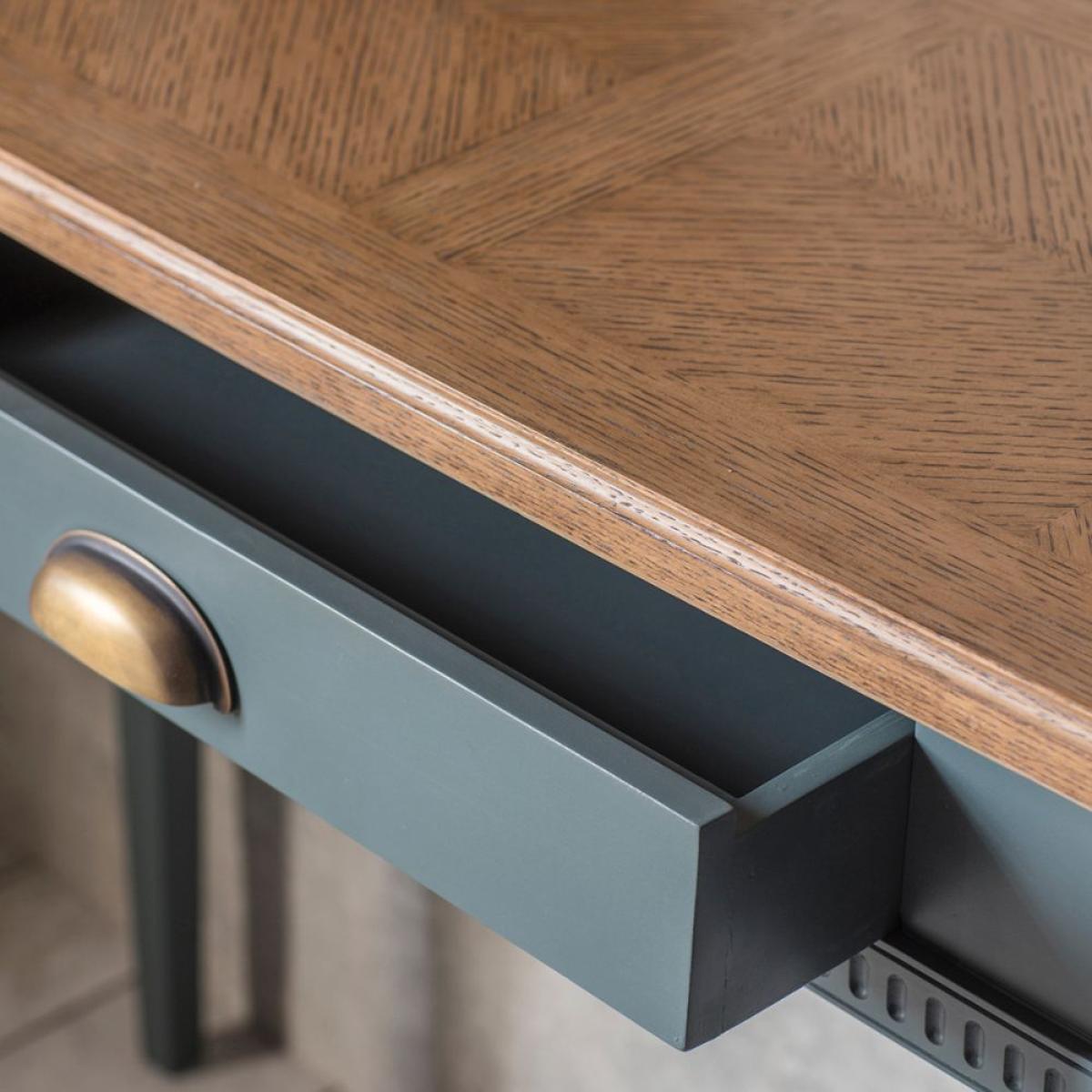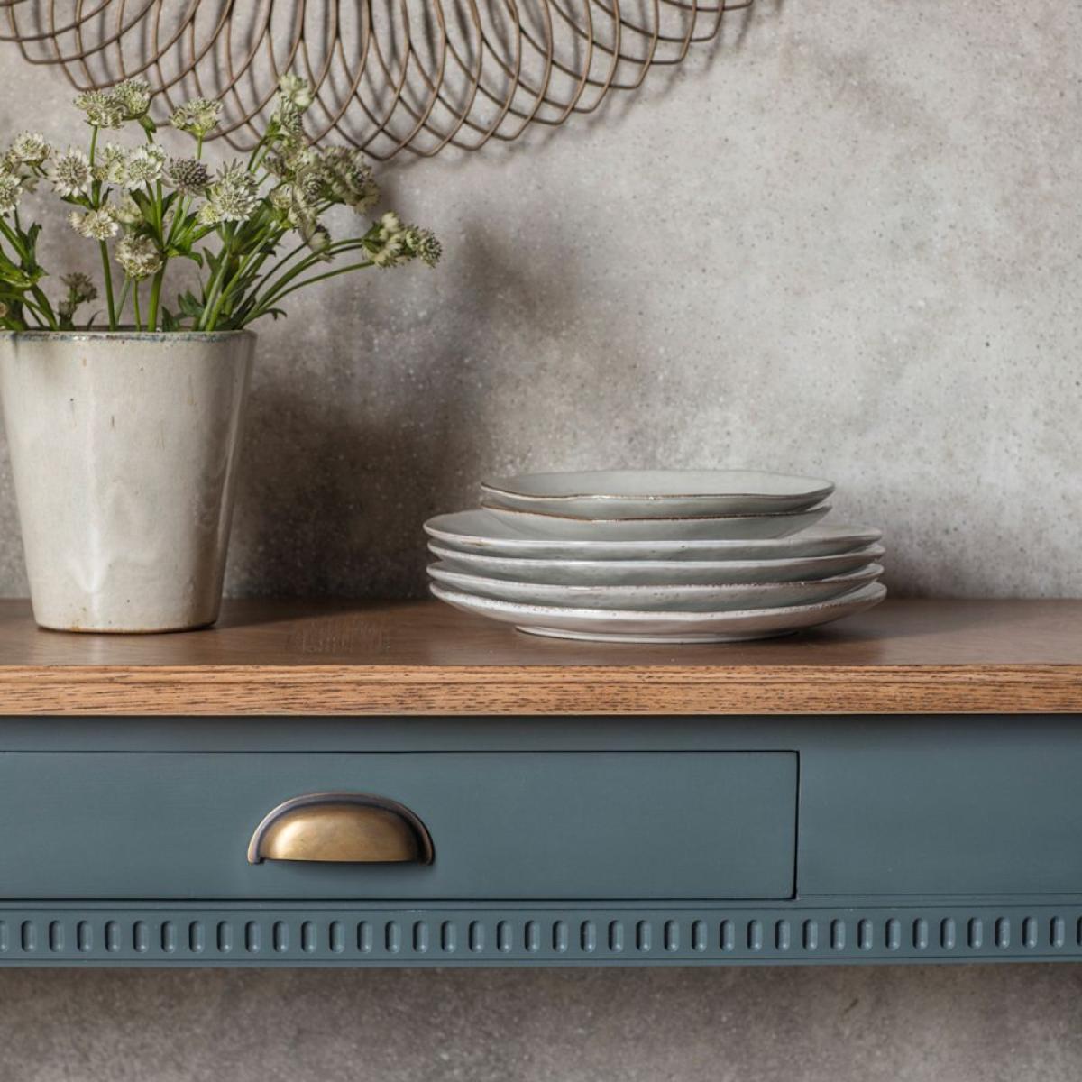 Bronte 1 Drawer in Storm Blue, from Olivia's. Add a beautiful centrepiece to your hallway or entryway with the rectangular Bronte console table. The perfect addition to bring a rustic-meets-modern touch to your interior decor. This traditionally styled table has a warming appeal that looks fantastic with a mirror centralised above it to create impact. Finished with a contrasting wood top, the beautiful shade of Storm Blue stands out, creating a subtle statement piece to your home. Storage space with its drawer and a large surface area give this console table functionality as well as style, allowing it to work beautifully with any interior style, modern or traditional.