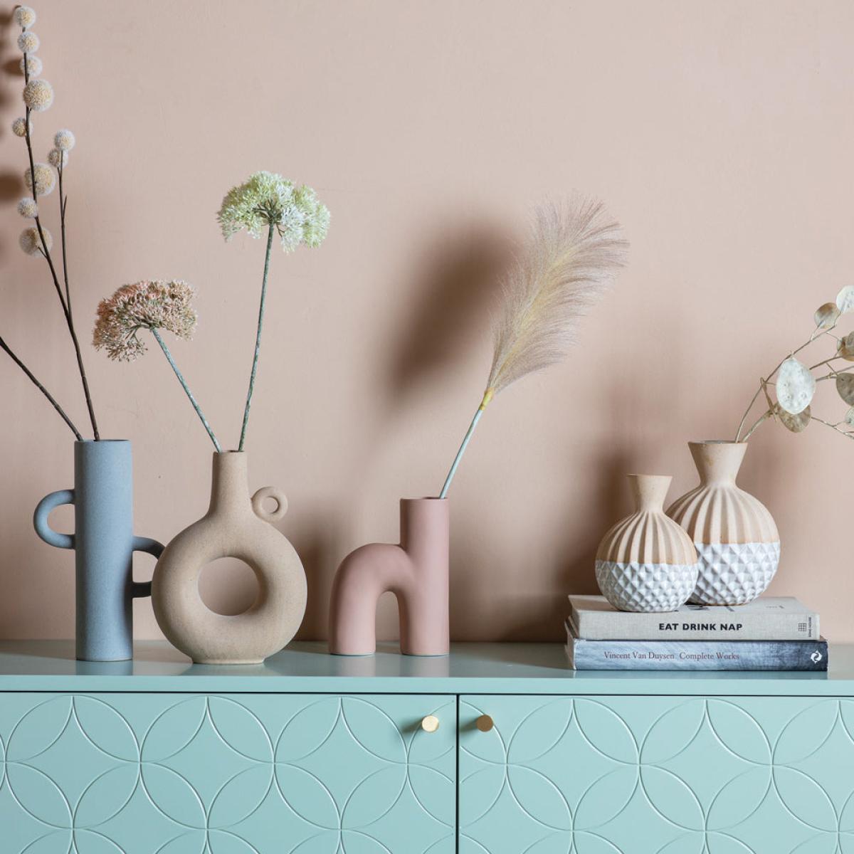 This stunning ceramic vase features an unglazed top section, which shows the beautiful natural tone and texture of the biscuit, paired with a grey glaze on the bottom section. Contrasting designs o. View More. This stunning ceramic vase features an unglazed top section, which shows the beautiful natural tone and texture of the biscuit, paired with a grey glaze on the bottom section. Contrasting designs on the two areas add interesting texture. A larger version is also available, and both are offered with a white glazed bottom section. All look great used individually of grouped together.