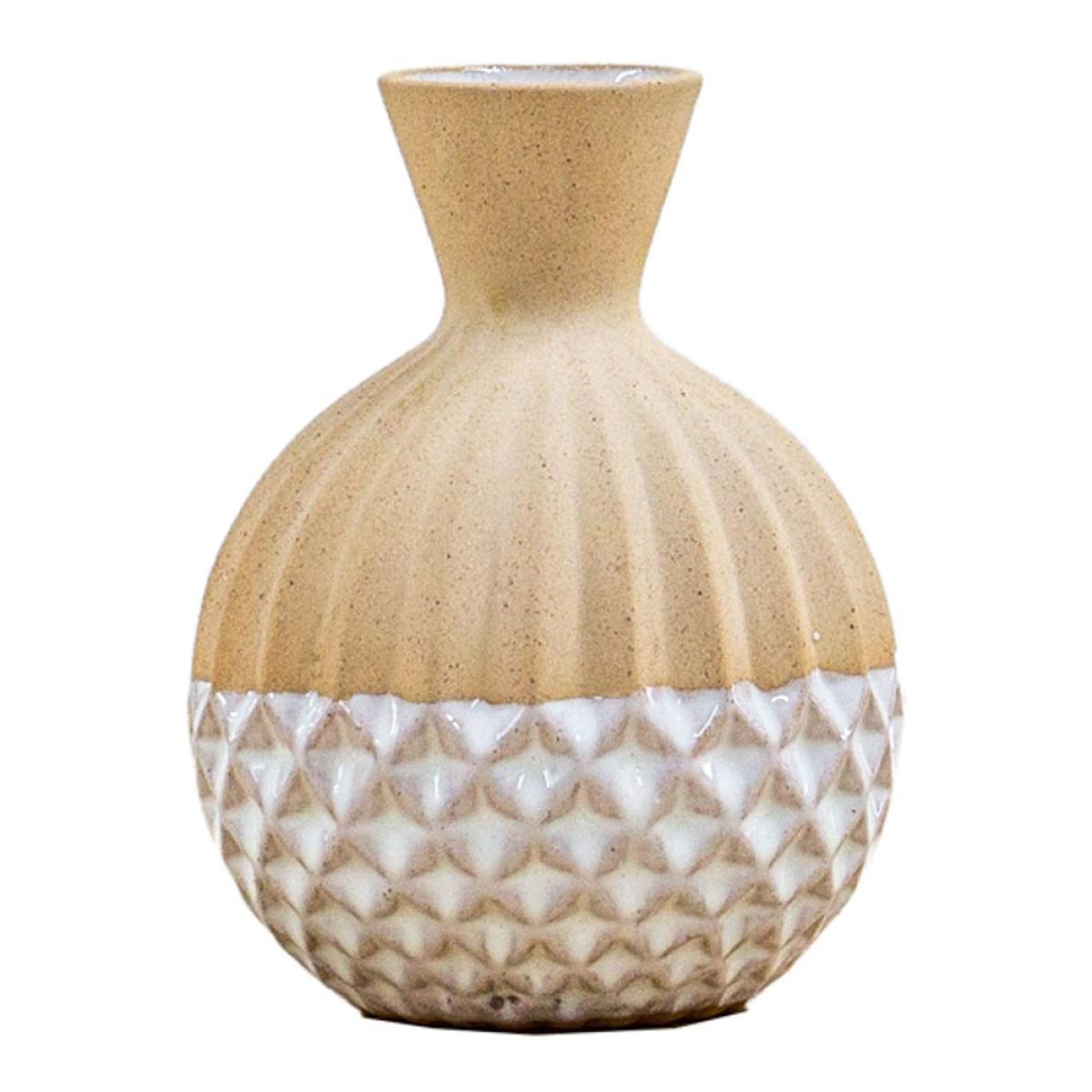 This stunning ceramic vase features an unglazed top section, which shows the beautiful natural tone and texture of the biscuit, paired with a white glaze on the bottom section. Contrasting designs. View More. This stunning ceramic vase features an unglazed top section, which shows the beautiful natural tone and texture of the biscuit, paired with a white glaze on the bottom section. Contrasting designs on the two areas add interesting texture. A larger version is also available, and both are offered with a grey glazed bottom section. All look great used individually of grouped together.