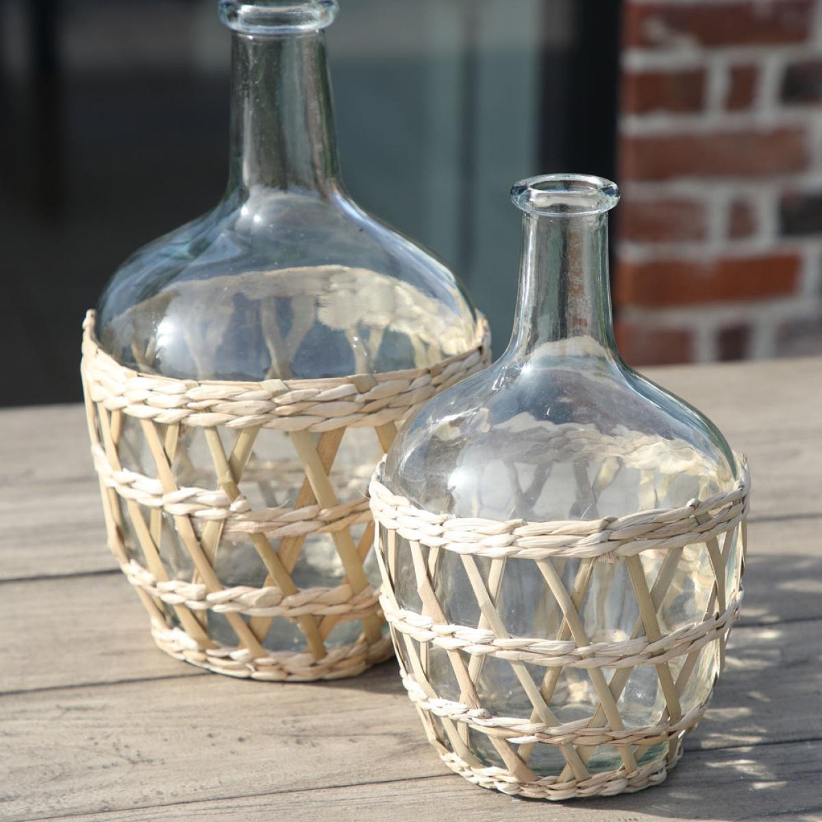 Bring an essence of bohemian style into your interior with this small bottle shaped glass vase, surrounded in a handwoven rattan criss cross weave adding texture and pattern. Dimensions: Small: H:. View More. Bring an essence of bohemian style into your interior with this small bottle shaped glass vase, surrounded in a handwoven rattan criss cross weave adding texture and pattern.
