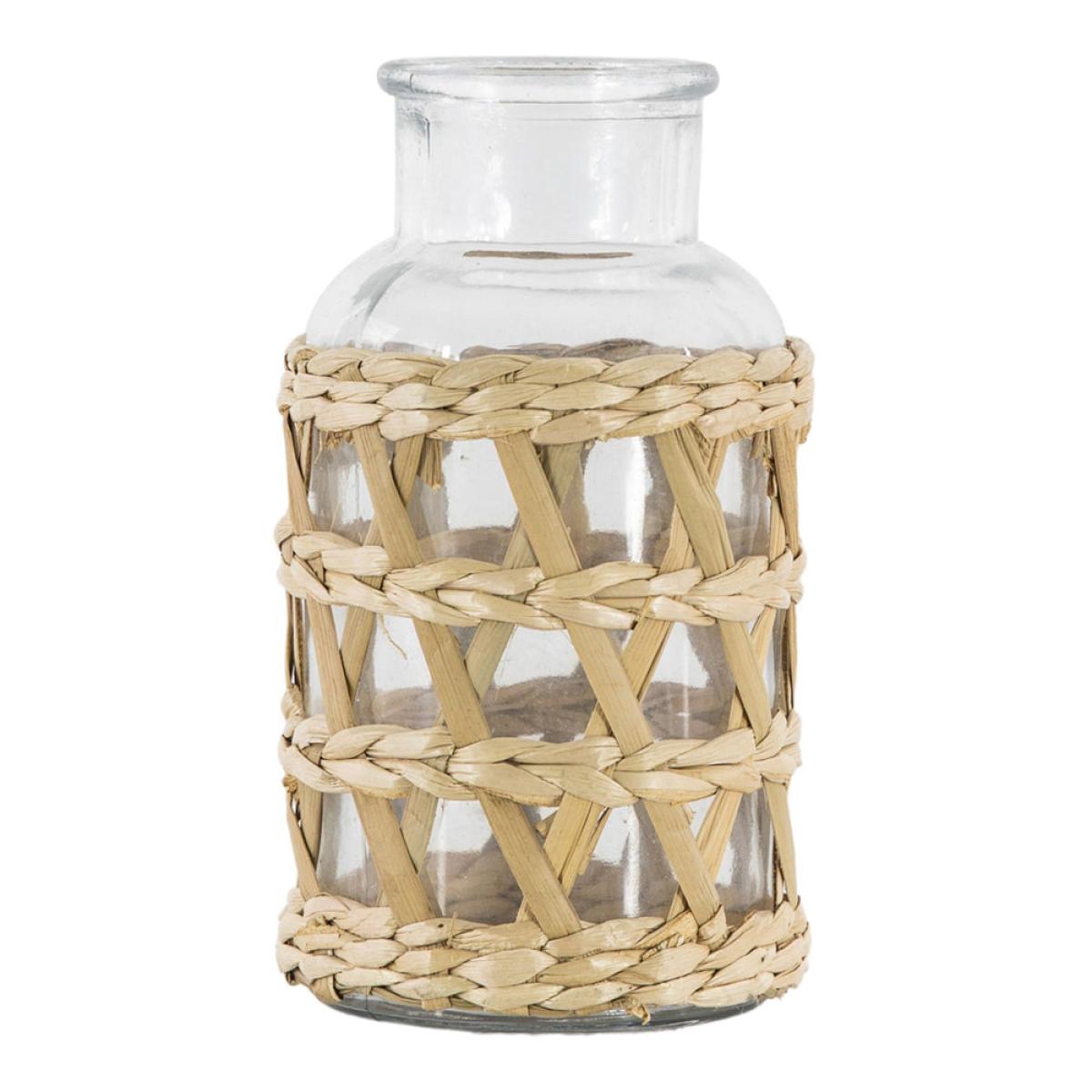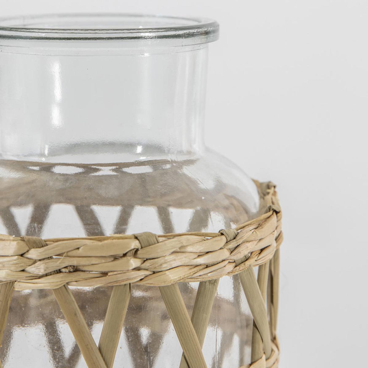Bring an essence of bohemian style into your interior with this thick large glass vase, surrounded in a handwoven rattan criss cross weave adding texture and pattern. Dimensions: Small: H: 16 x W:. View More. Bring an essence of bohemian style into your interior with this thick large glass vase, surrounded in a handwoven rattan criss cross weave adding texture and pattern.
