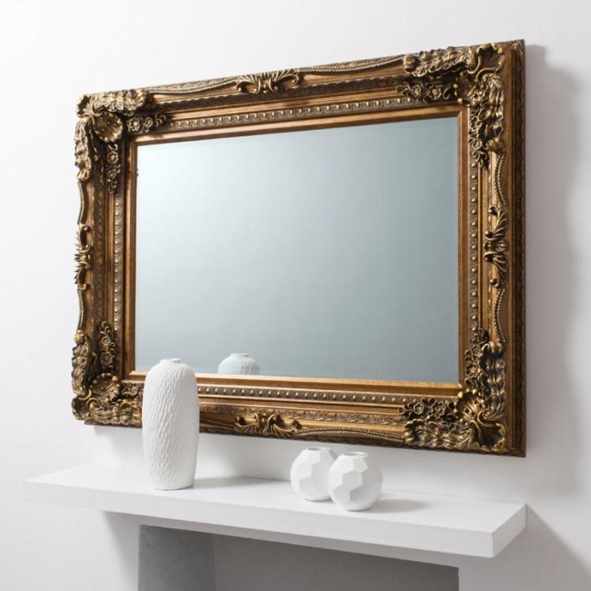 Mirrors give the threefold benefits of opening up a room by reflecting light, giving the illusion of more space and providing a focal point from which to juxtapose other pieces. This Gallery Direc. View More. Mirrors give the threefold benefits of opening up a room by reflecting light, giving the illusion of more space and providing a focal point from which to juxtapose other pieces. This Gallery Direct mirror is a generous size that can perform all of those features without overwhelming your living space. With fine attention to detail shown in each edge of its frame this Louis mirror gives gravitas without being too formal and luxury without being overly opulent. With its stunning gold colour beautifully antiqued across it’s scrolling floral accents, this Louis mirror makes an attractive feature piece for your home. Outlet items may show some signs of minor cosmetic imperfections.