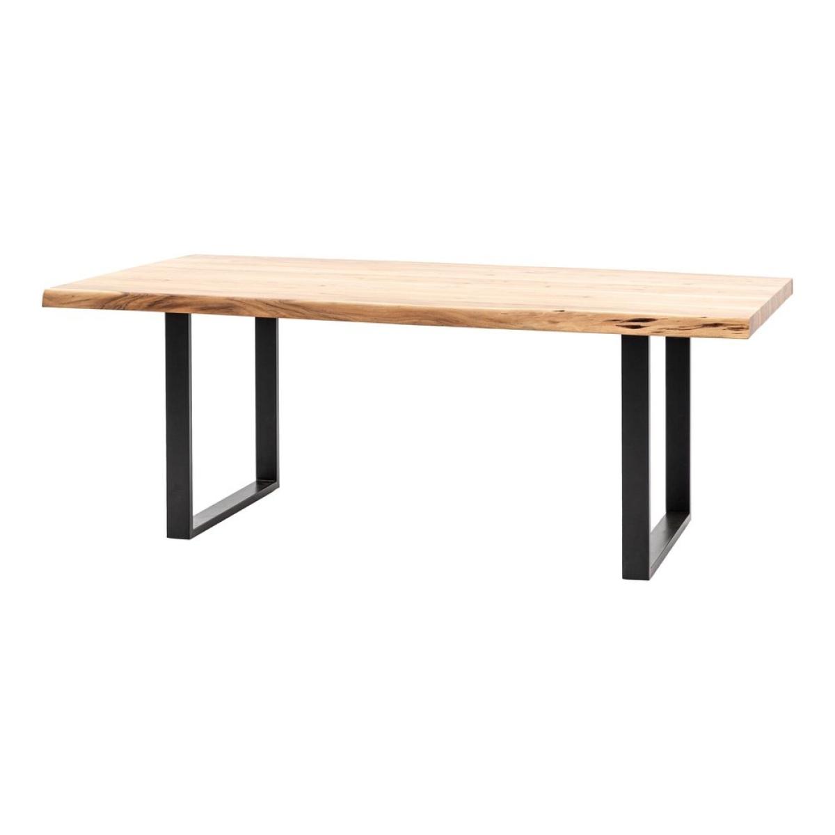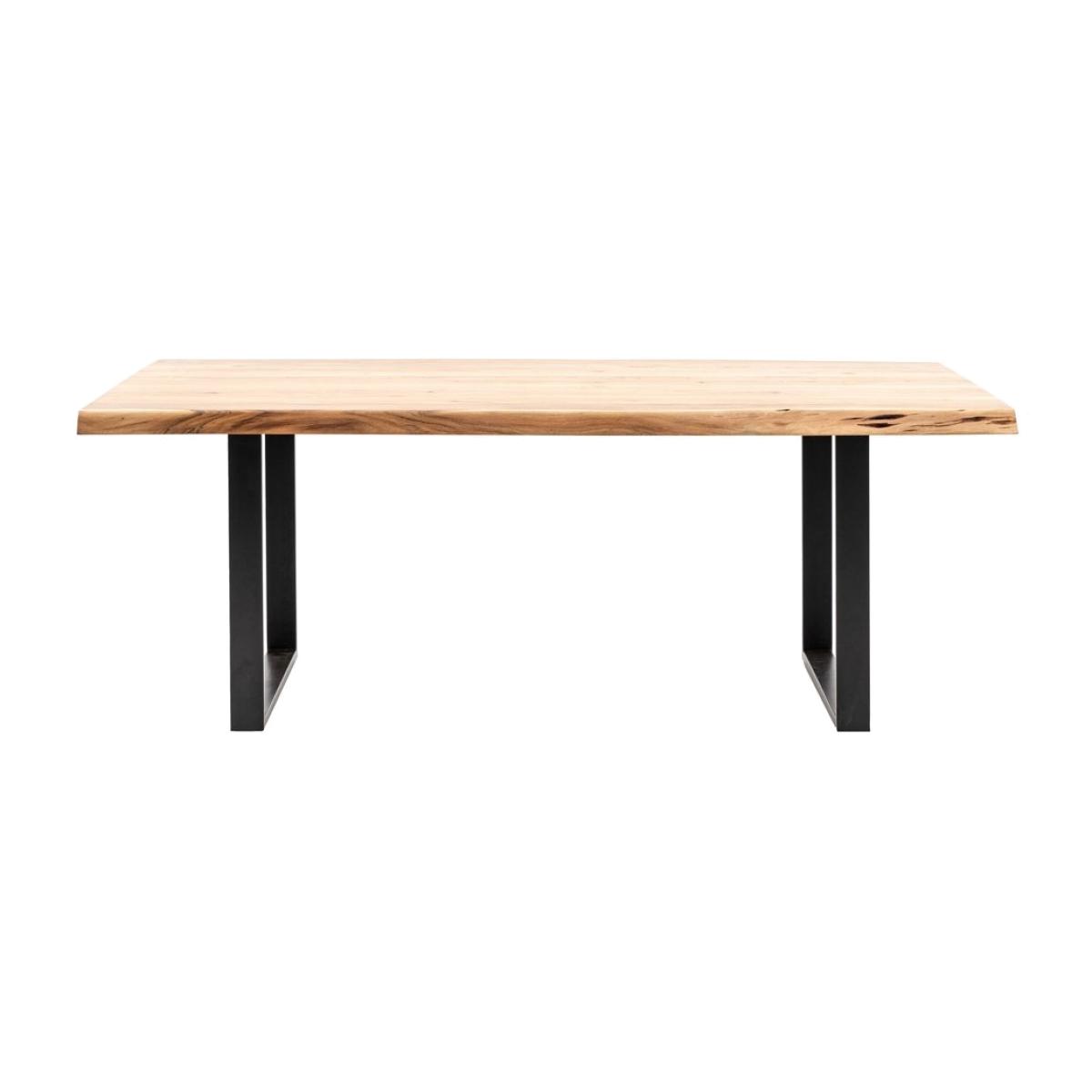 This lovely dining table features a solid acacia top with a live edge, paired with a black metal ‘U’ shaped underframe which gives a modern semi-industrial look, ideal for any eclectic interior. It looks perfect paired with the matching dining bench. A larger table is also available. Additional Information