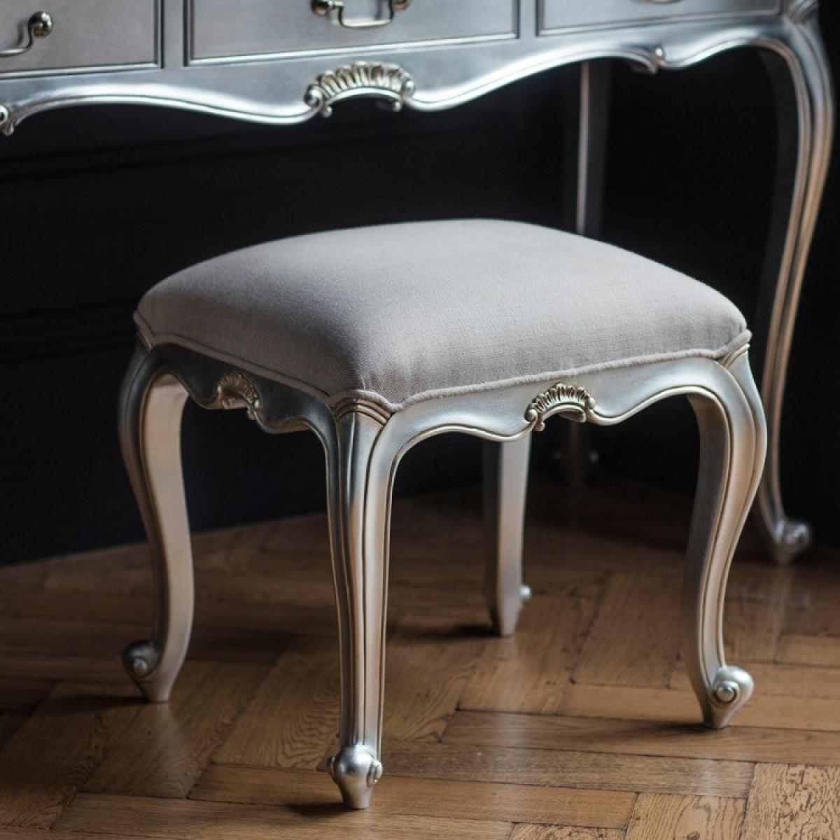 Chic Dressing Stool in Silver, from Olivia's. Elegant and effortlessly chic, add a touch of glamour to your boudoir and dressing area with the̴ Chic Dressing Stool. Finished in a stunning weathered wood in a silver paint finish, this French-inspired beautiful piece has been created in a timeless design, perfect for both contemporary or traditional interiors. Both functional and stylish with an upholstered seat, place with your dressing table to create a boutique look. With its beautifully intricate detailing across its carved edges and stunning feet, its the perfect addition to input some character to your space. Dimensions: W47 x D:45 x H:40 cm Materials: Mahogany Assembly Required Linen seat