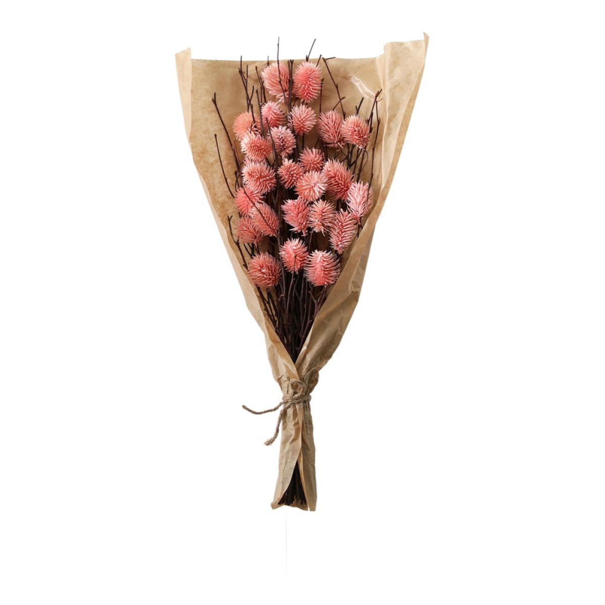 Made from naturally dried thistle flowers, the Dried Thistle Bundle is going to bring a sense of the outdoors into your home. The beautifully delicate thistle heads radiate blush tones that will accentuate any interior design. The dried stems contrast naturally with the thistle heads. This Thistle Bundle imbues a rustic vibe, suiting a room decorated in a warm homely style but also injecting a sense of warmth into a more minimalist décor. Available in two sizes, these flowers will look exquisite in vases on their own, mixed in an arrangement of both the small and large size or arranged with other varieties. Dimensions:Small: H: 46 x W: 6. x D: 22 cm. Large: H: 54 x W: 7.5 x D: 36 cm Materials: Osmanthus Fruits / Birch Twig / Paper / Polyester / Jute Assembly Required