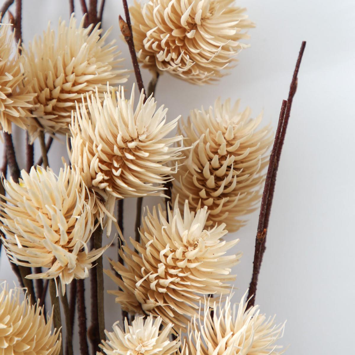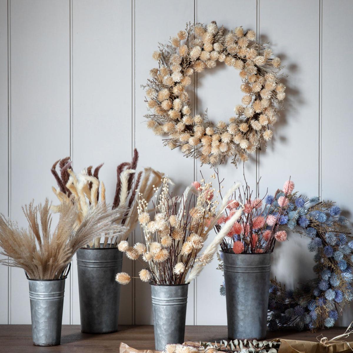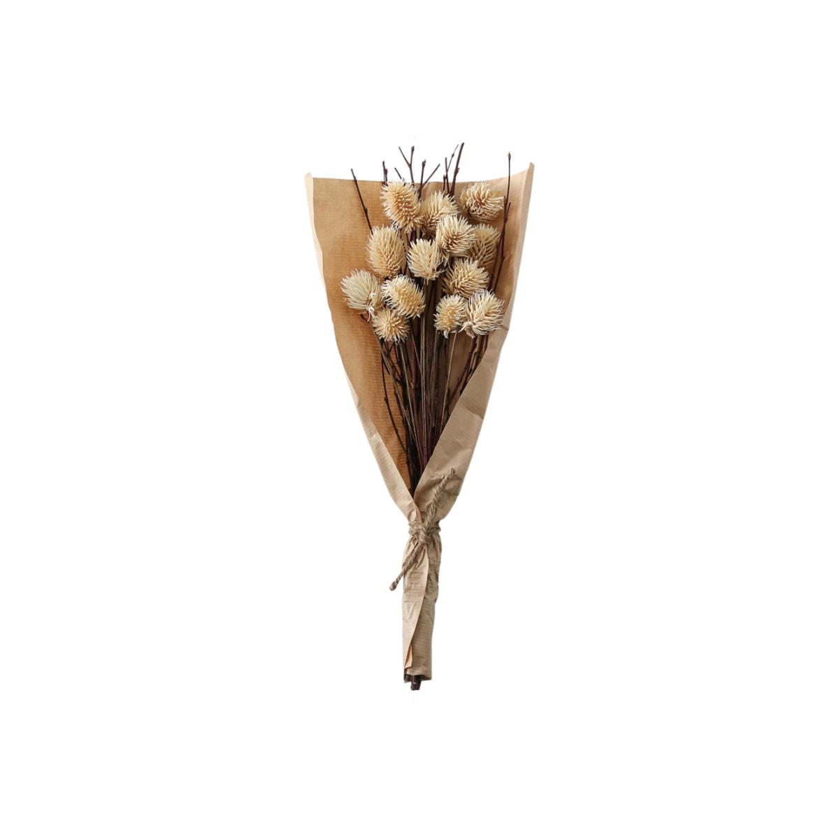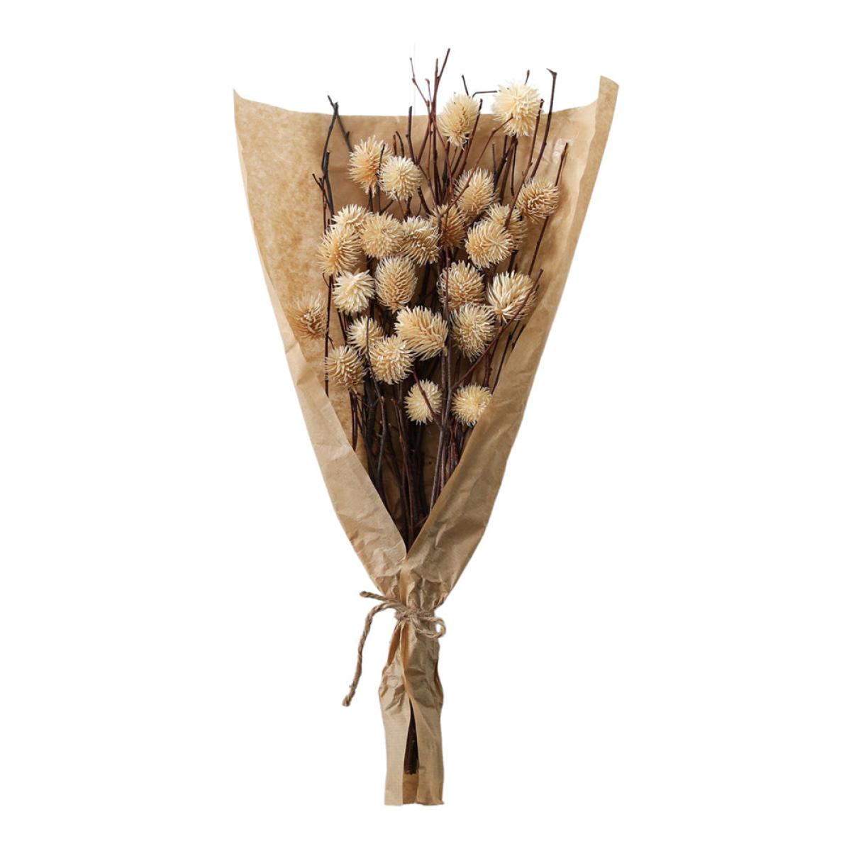 The Dried Thistle Bundle Faux Plant from Gallery Interiors is a beautiful bunch of natural dried thistle that has been arranged ready for use and comes wrapped in simple, authentic brown paper. Available in two sizes, the faux plants are ideal for displaying anywhere in the home and also make a very special gift. Place in a vase of your choice and display on a dining table, wide windowsill, sideboard or fireplace. These also make a lovely bedroom accessory and can add character to entrance halls and dark corners. It's a lovely way to add some soft, natural colours to any room. Dimensions:Small: H: 46 x W: 6.5 x D: 22 cm. Large: H: 54 x W: 7.5 x D: 36 cm Materials: Osmanthus Fruits / Birch Twig / Paper Polyester Jute Assembly Required