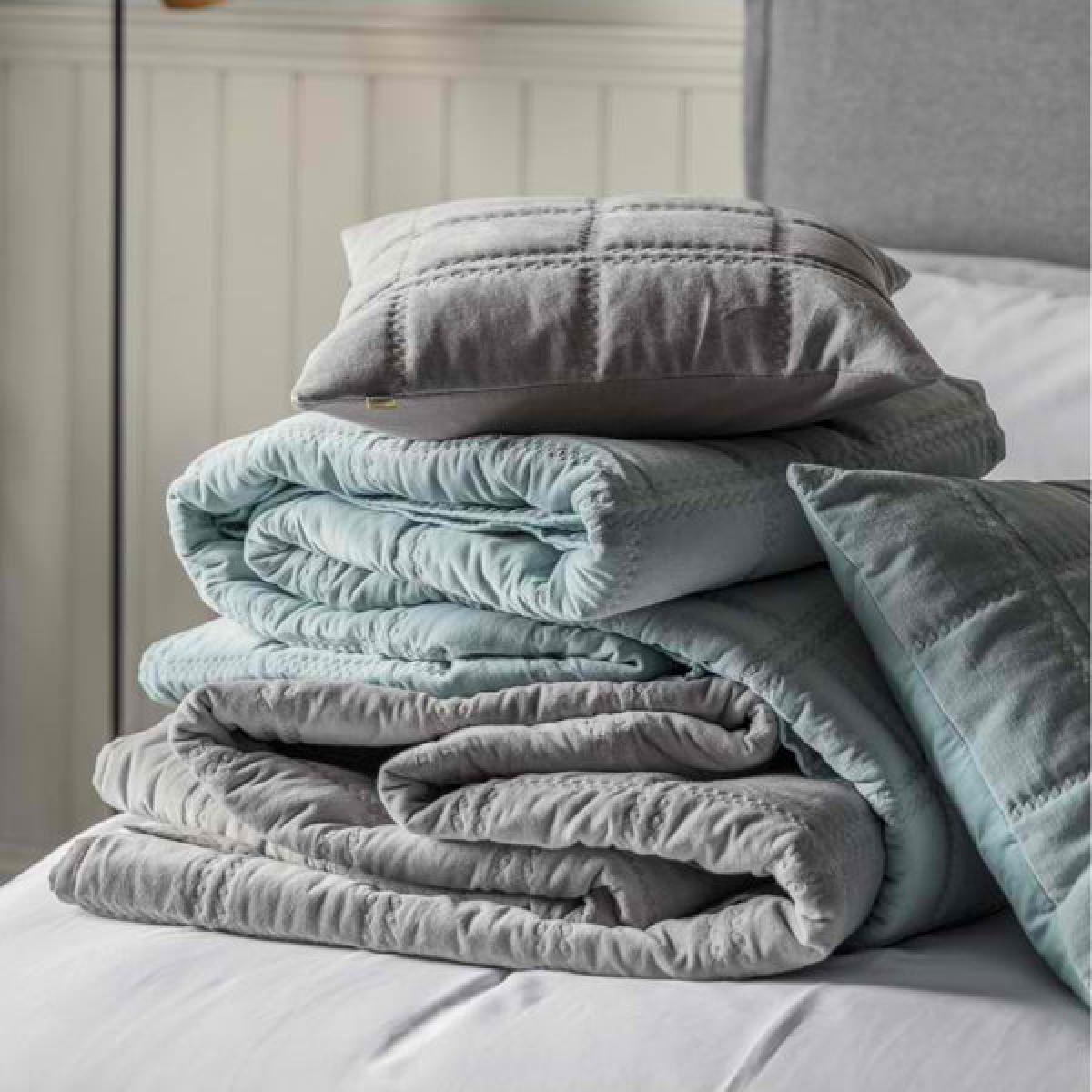 Gallery Interiors Cotton Quilted Blanket Bedspread in Duck Egg | Outlet
