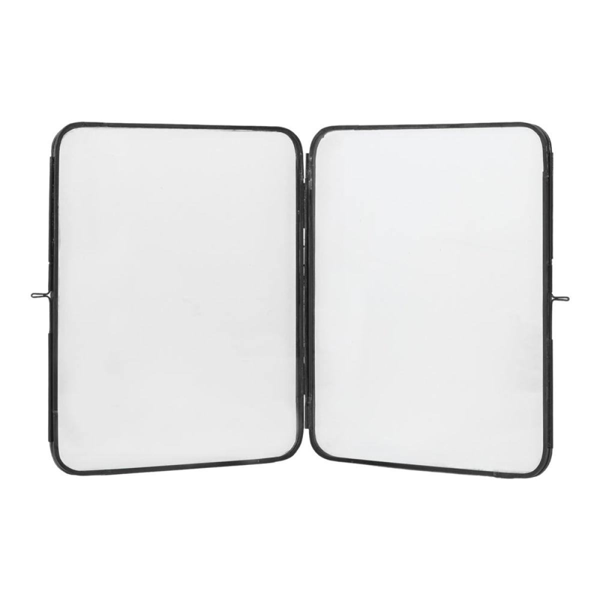 This handmade double frame has a black finish. It is designed to fit 5x7" photos, but is also great for displaying keepsakes. Dimensions: Small: H: 18 x W: 26 x D: 1 cm. Large: H: 25. 5 x W: 41 x D:. View More. This handmade double frame has a black finish. It is designed to fit 5x7" photos, but is also great for displaying keepsakes.