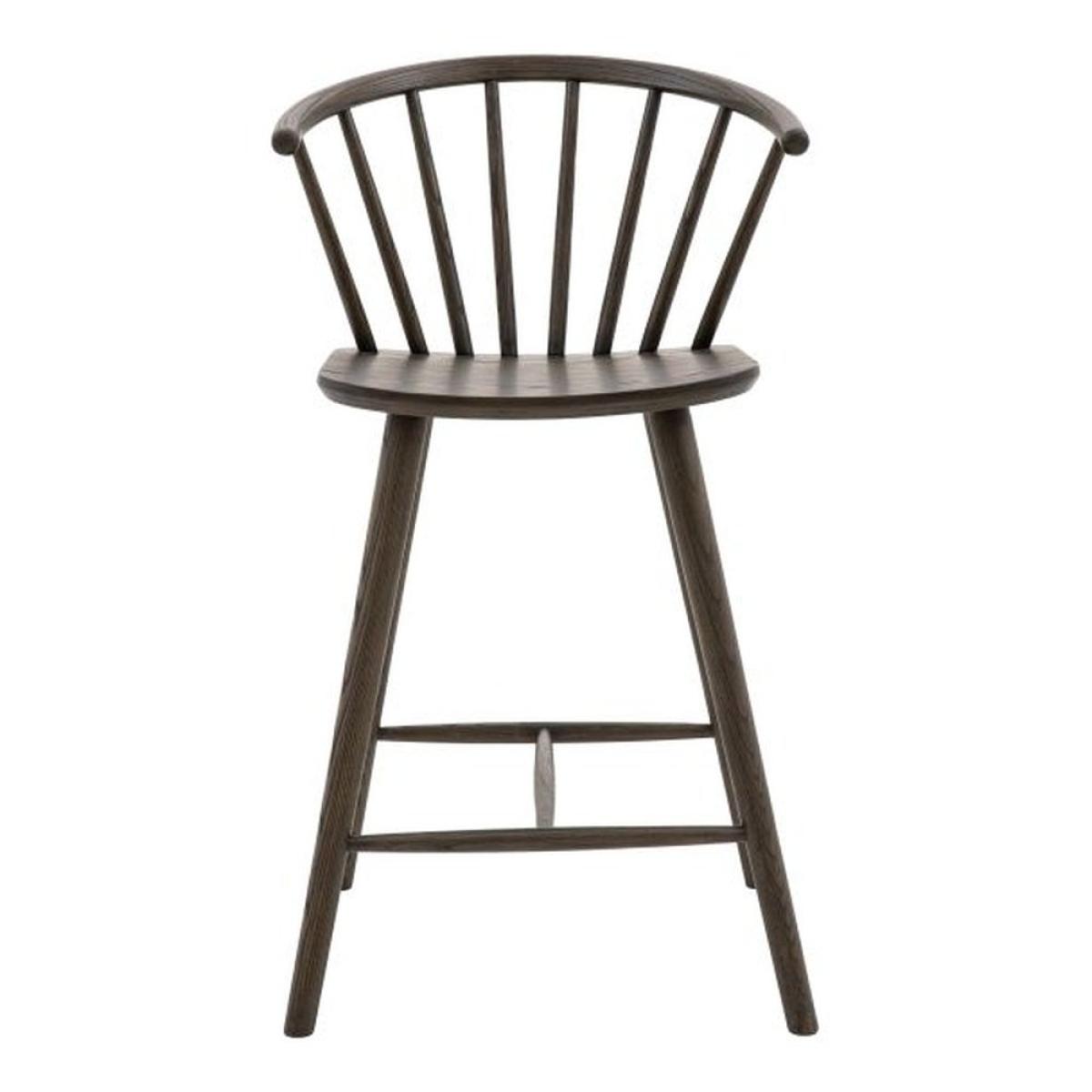 This stylish barstool features elegant turned legs and back spindles and a gently shaped seat. The wood has a lovely deep brown finish. Also available in a natural finish. Matching and coordinating pieces available. Additional Information