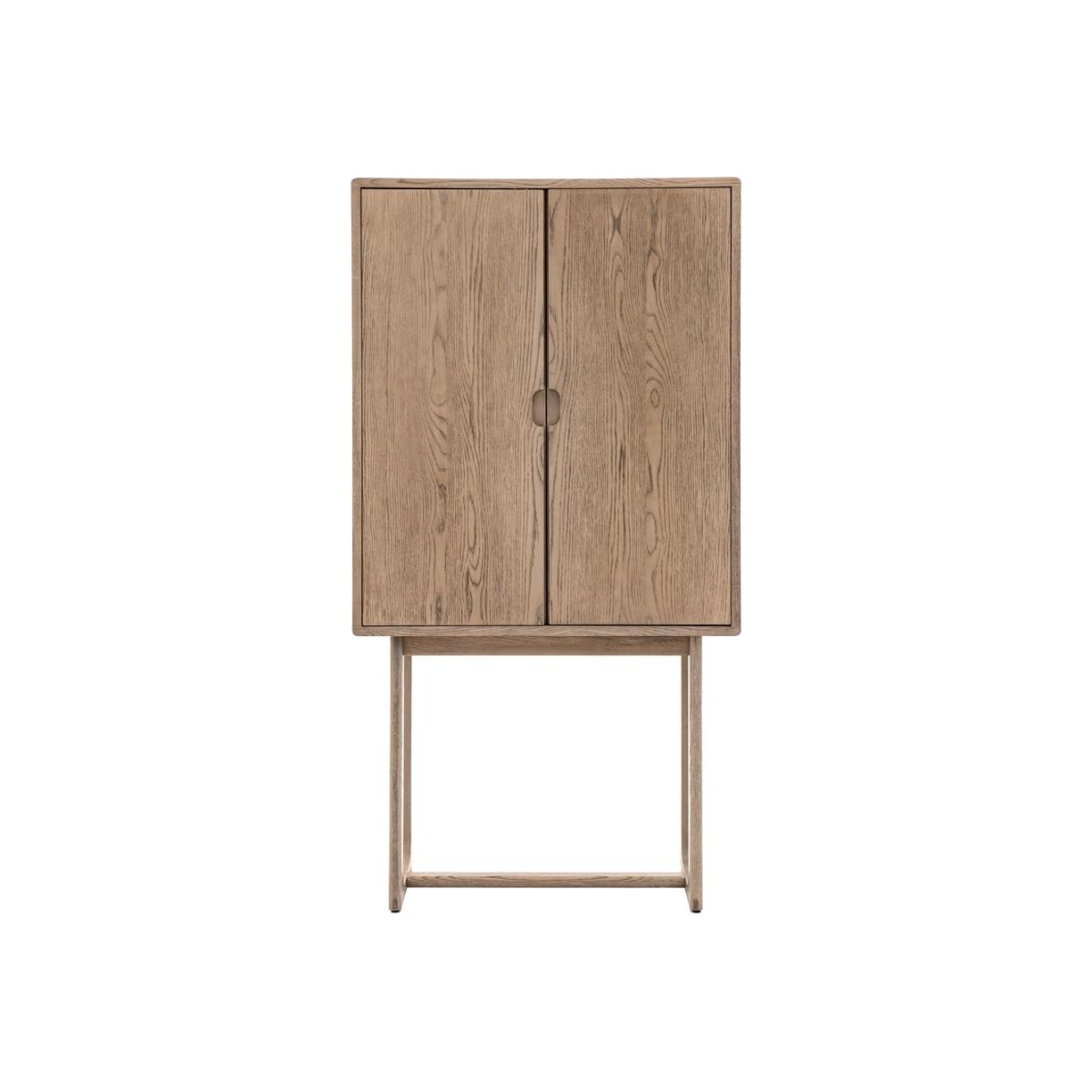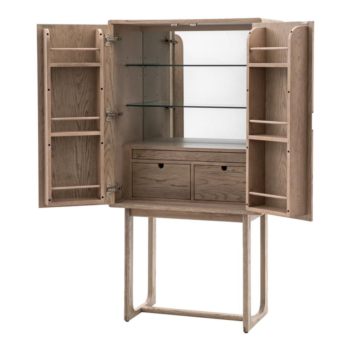With its cut-out handles and beautifully shaped underframe, this lovely cocktail cabinet offers stunning design. It is crafted from the finest oak and oak structural veneers where practical, with smoked oak finish. Finger joints on the corners of the piece, a technique found on high quality cabinetry, give strength and a sense of purpose and tradition to create long-lasting, legacy furniture that can be collected and handed down through generations. Also available in a natural finish. Matching pieces available. Additional Information: Adjustable shelves: yes Internal Drawer Size: W:30 x D:23.8 x H:16.2cm Internal Cupboard Size: W80 x D:43.9 x H:658cm Anti Topple Kit Included Clearance to Floor: 60cm Leg Height: 60cm Dimensions: H:160 x W:85 x D:45cm Materials: Oak 55% / Oak Vaneer MDF 30% / Pine 10% / Glass 5% Assembly Required: Yes Care Instructions:Wipe clean with a soft dry cloth - no harsh abrasives