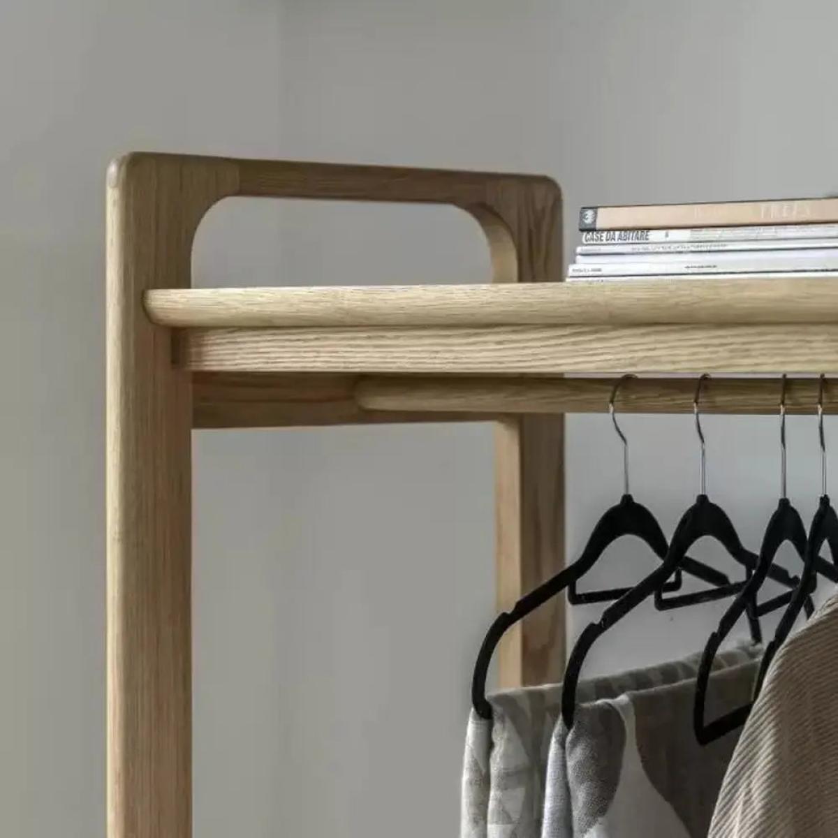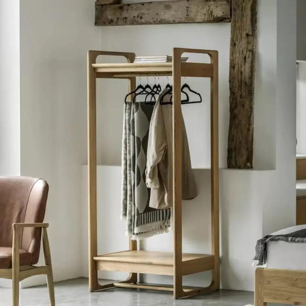 I love this open wardrobe for its minimalist, natural look that works particularly well in modern or Scandinavian-inspired interiors. Its open design makes it perfect for creating an airy, uncluttered feel in bedrooms or dressing areas, especially when paired with simple storage solutions like woven baskets or sleek hangers. Practical styling tips include using natural linen or cotton laundry baskets underneath and adding a few decorative hooks for accessories. This style of wardrobe encourages organisation and can be a key feature in spaces where storage is needed without compromising on aesthetic.