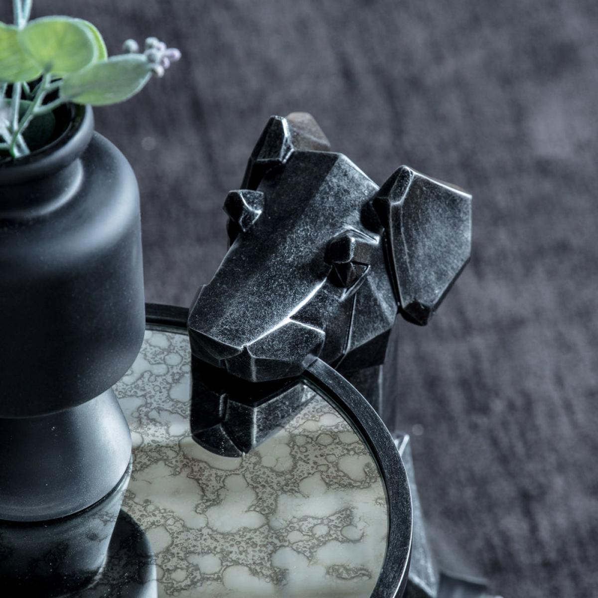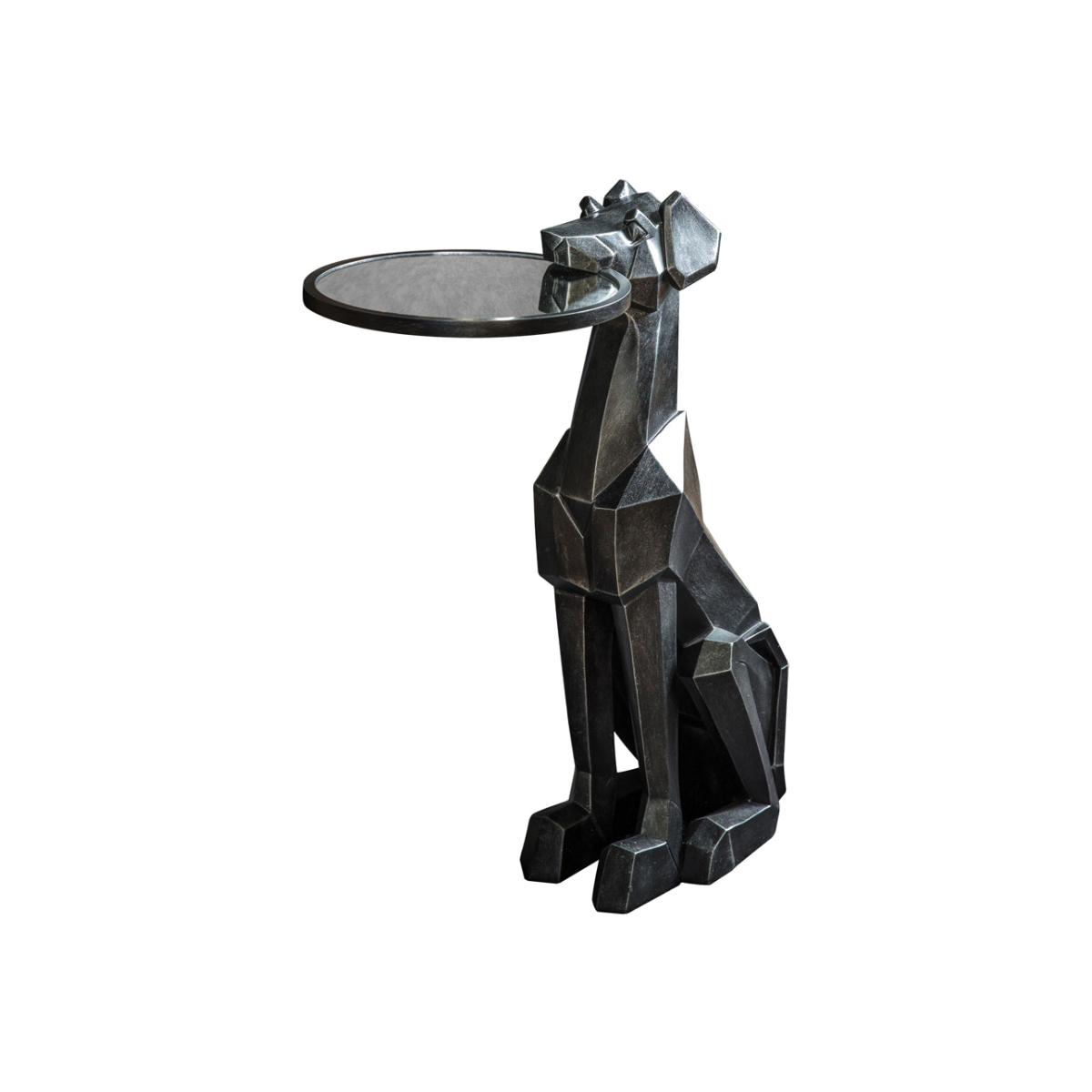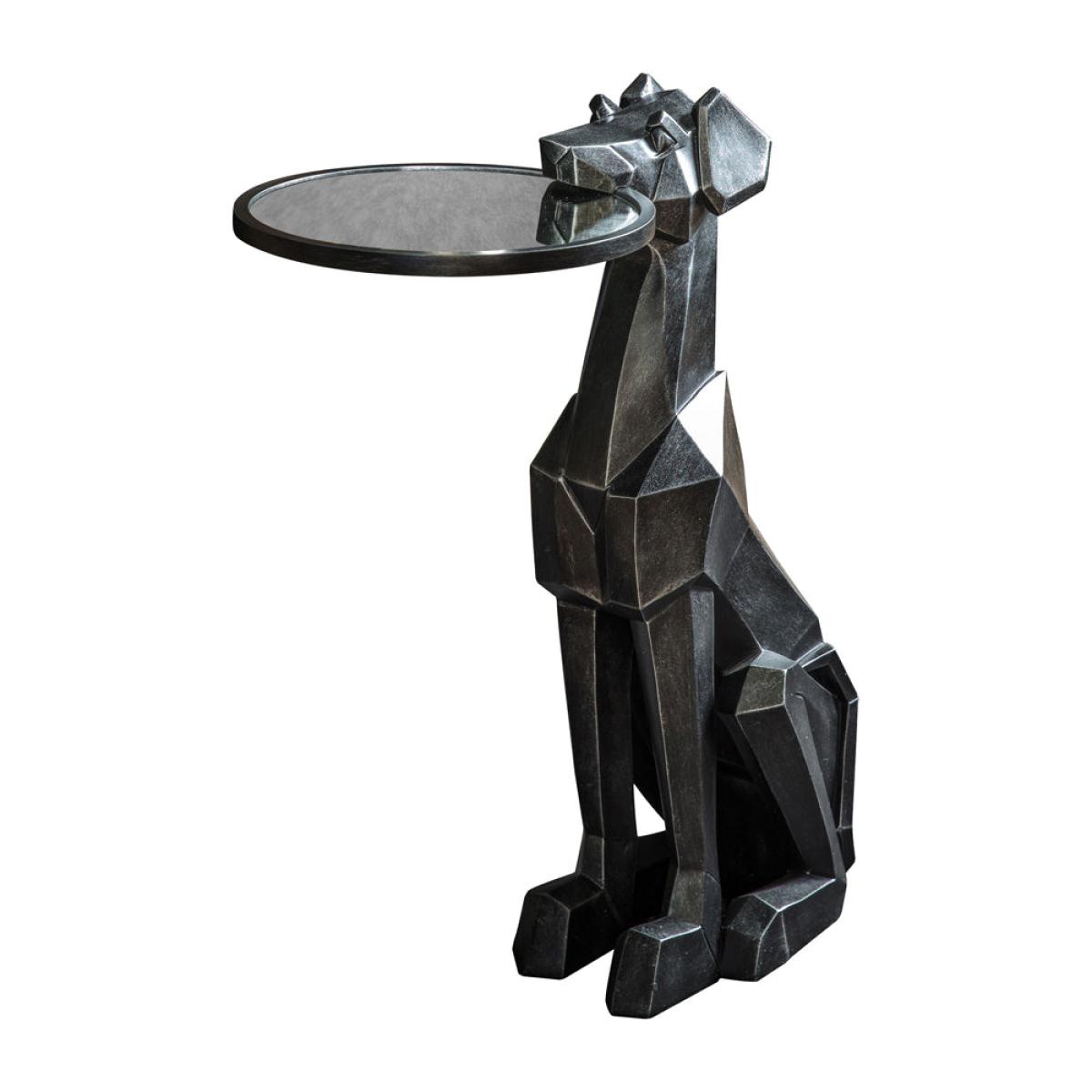 This Dexter Dog side table is a dog lover's dream. The charming design features a sitting dog with a round platform in its mouth that acts as the table top. It is the ultimate combination of functionality and fun. The geometric shapes used to create the body of the dog along with the sleek, black finish make this side table both extremely stylish and eye-catching; the perfect addition to any hallway, bedroom or living space. Measuring at an impressive 67.5cm tall, this truly is a perfect pooch that will make a real statement and bring canine character into your home. Grrrreat! Dimensions: W: 54 x D: 30 x H: 67.5cm
