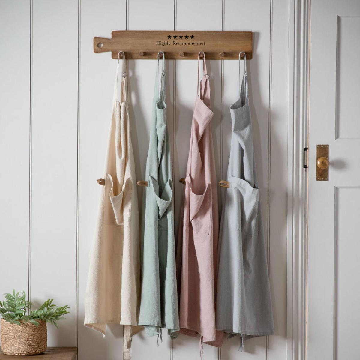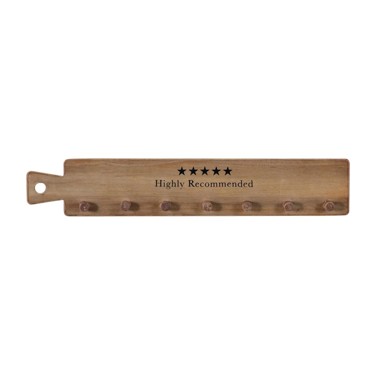 The exclusive own-design Critique Hooks in natural by Gallery Interiors will keep tea towels or kitchen utensils organised. The grained natural wood will be a perfect fit in any kitchen. It has an unfussy, rustic design that resembles a handled chopping board or platter, while the seven simple cylinder wood pegs complete the DIY woodwork look. The board gives a wide base for easy wall attachment anywhere in your room. Perfect for farmhouse and traditional kitchens with lots of wooden features and organic textures, busy cooks will love this wall storage solution. Dimensions: H: 12 x W: 67.5 x D: 4 cm Dimensions: H: 12 x W: 67.5 x D: 4 cm Materials: Iron / MDF Assembly Required