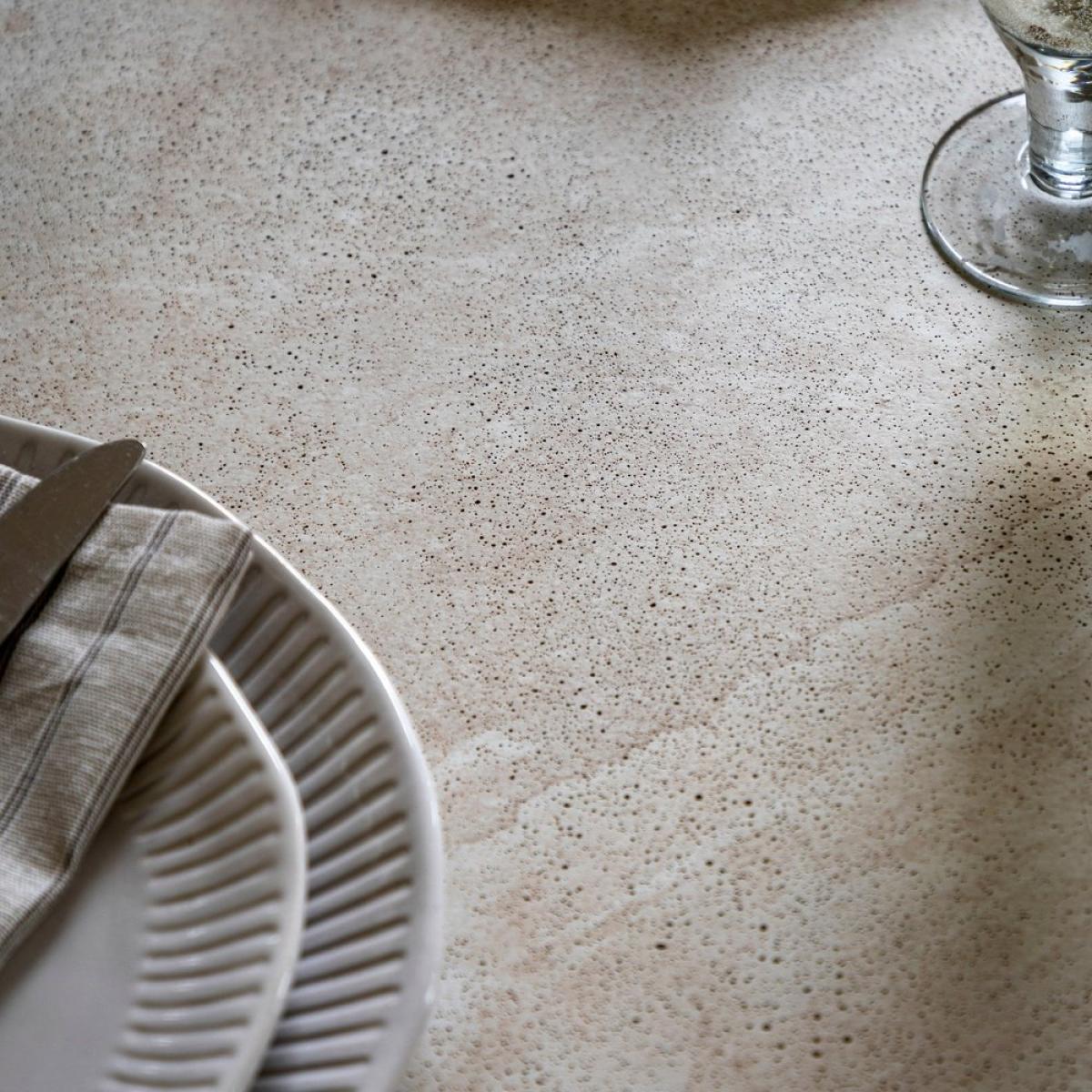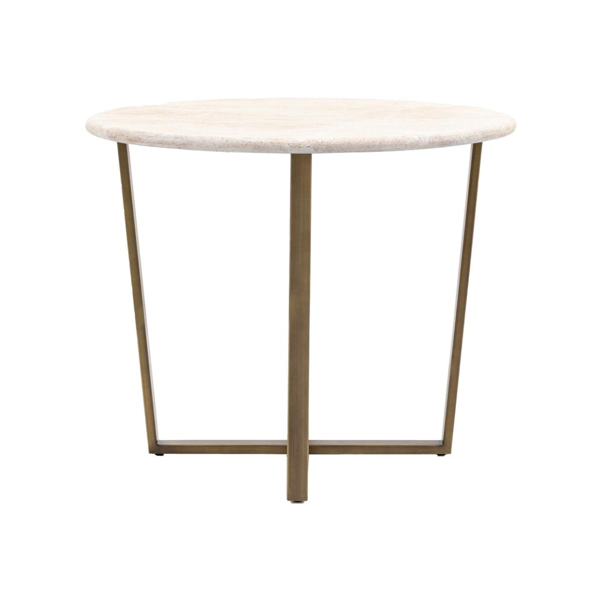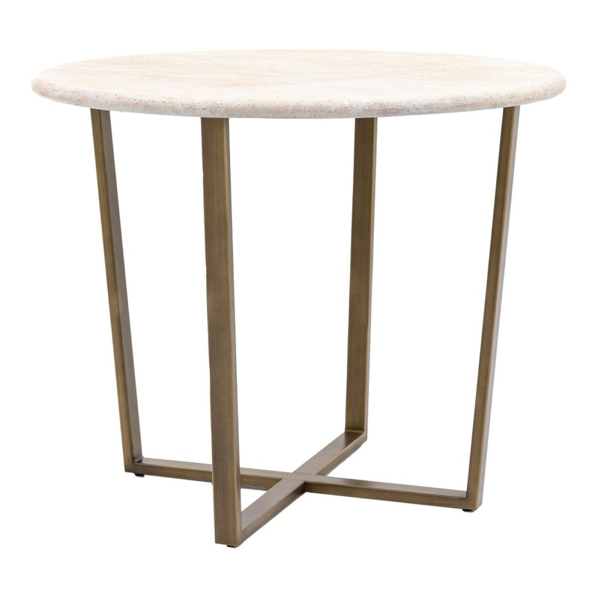 This stylish dining table will add a touch of sophisticated elegance to a room. The top features the most amazing travertine faux finish which is created with the latest state of the art technology to give the look and feel of the real thing but without the weight and technical difficulties. The faux travertine pairs beautifully with the metal base which has a classy bronzed brass finish, to give an understated luxury style, perfect for any classic modern interior. Matching items also available. Additional Information