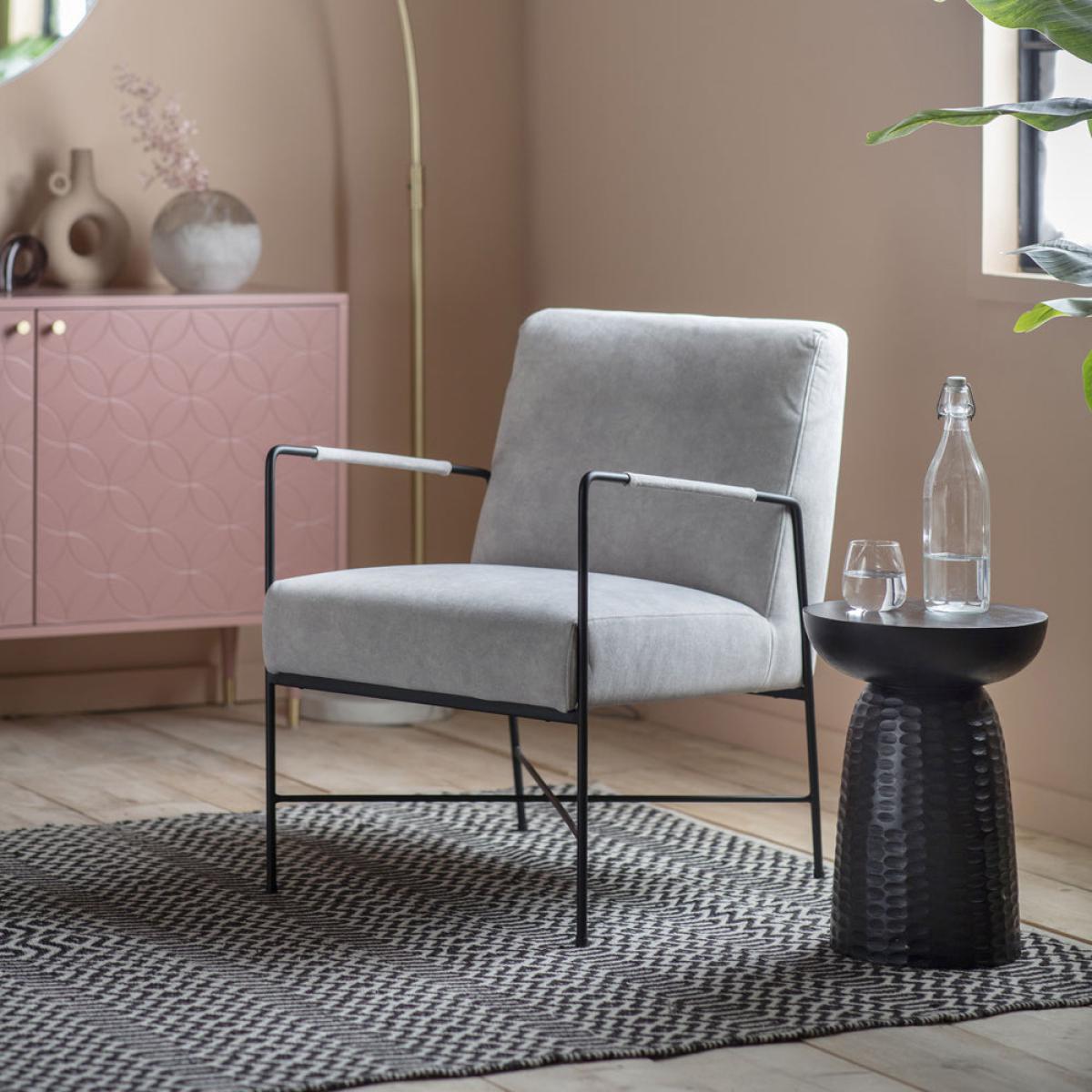 A fresh new twist on the classic cocktail chair, the elegant Erez armchair in grey from Gallery Interiors is perfect for sinking into whilst you enjoy your favourite drinks with a friend. We just love the idea of using it to relax with an espresso martini and chatting the afternoon away. It has sumptuous, supportive, and supple cushioning with elegant arms finished in the same soft fabric. We adore the clean minimalist lines of the matt black metal frame. It’s small enough to fit in a nook, kitchen, library, or conservatory. Also available is the. Erez. Armchair in white. Materials: Ash, Plywood, FR Foam, Polyfibre, Polyester Fabric. Assembly Required: No. *Moot Trading Ltd is not a lender and acts only as an introducer. The credit product is provided by Klarna Bank AB (publ). Credit is only available to permanent UK residents aged 18 and over, subject to status. Terms and conditions apply. Please note that the following products are not regulated by the FCA: Pay in 30 days and Pay in 3 instalments. Read More.