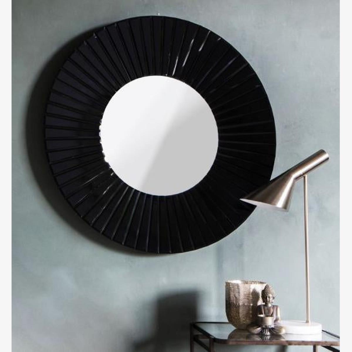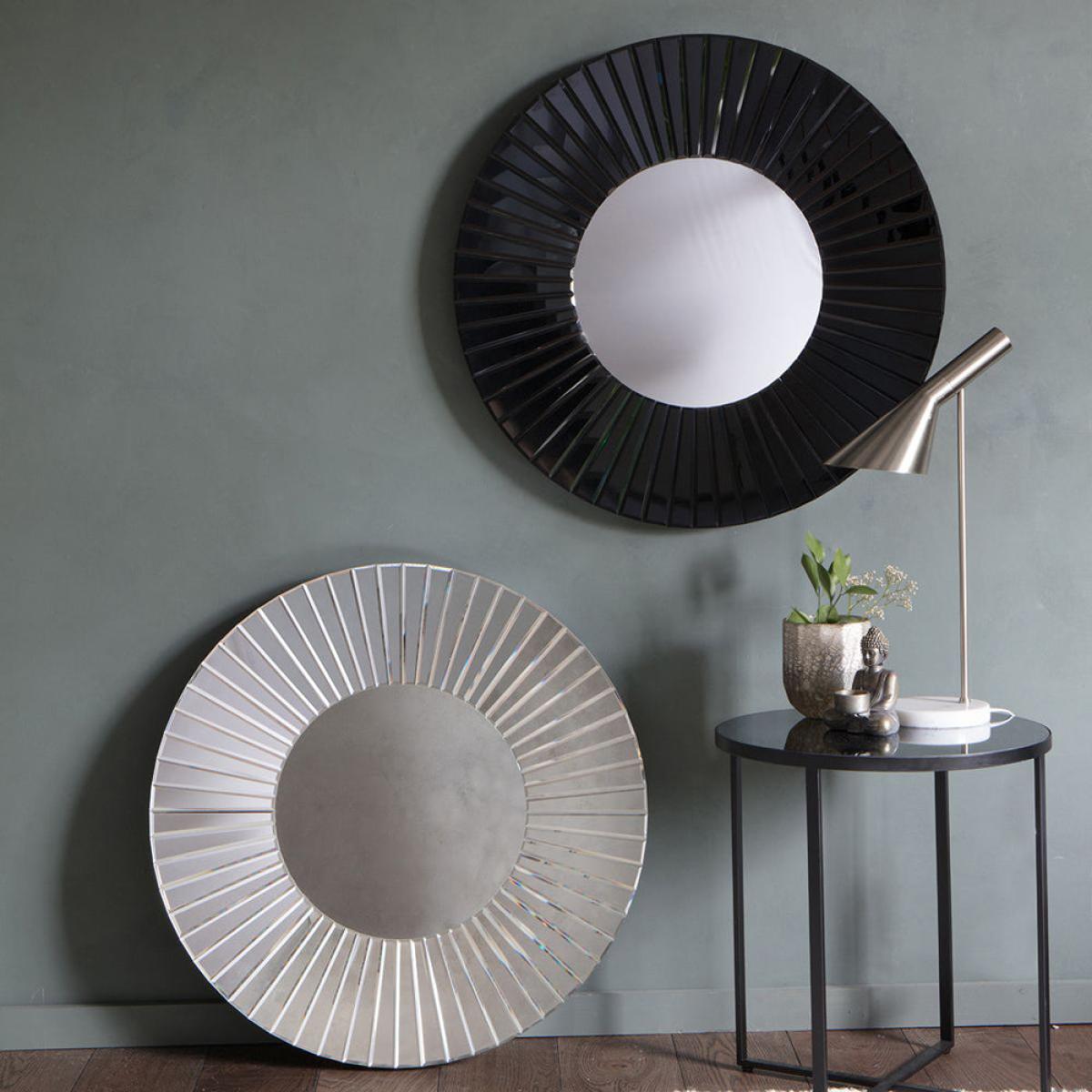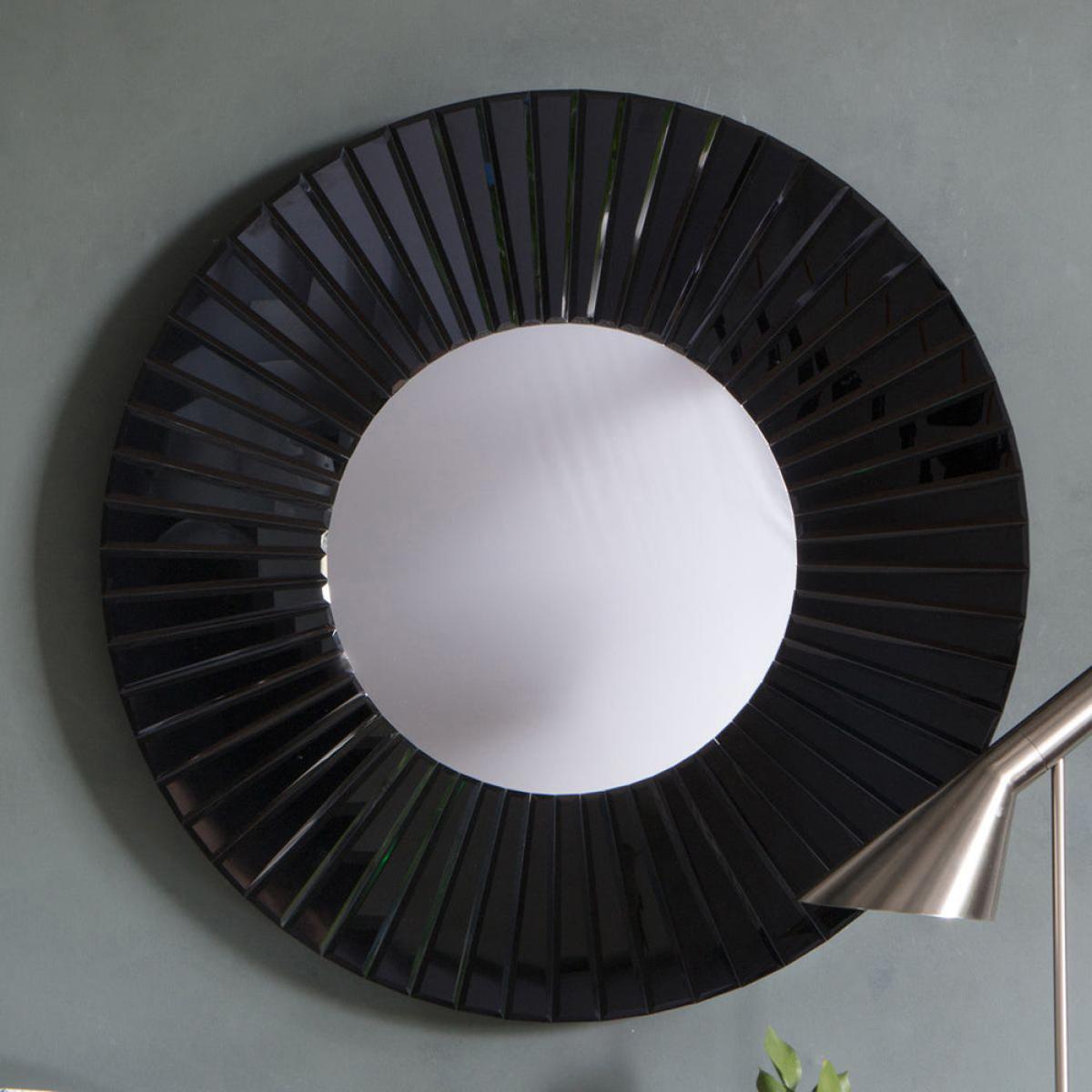 Create a contemporary paradise in your home with the Faxton mirror from Gallery Interiors. Carved in a classic sunburst effect with a modern twist, this stunning mirror is finished in black and has. View More. Create a contemporary paradise in your home with the Faxton mirror from Gallery Interiors. Carved in a classic sunburst effect with a modern twist, this stunning mirror is finished in black and has a subtle shine. With its perfect circular form and diameter of 80cm, the Faxton mirror will look great in any contemporary, ethnic or eclectic setting; for example, use it as a bathroom mirror in a monochrome design or place it above a mantelpiece to create an eye-catching display. Mix and match with other pieces from Gallery Interiors for the latest modern and on-trend style for your living space.