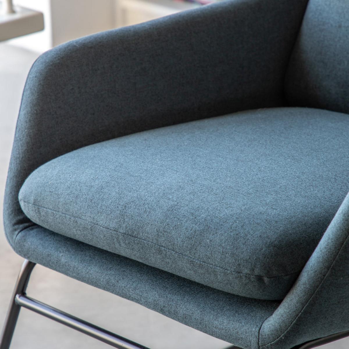 Offering a retro look with a contemporary twist, this lovely chair makes a great additional to any room. Fully upholstered with a padded back and seat cushion for extra comfort, the stylish design of the seat is complemented by the slim metal leg frame. Also available in three other colours. Dimensions: H: 83.5 x W: 63.5 x D: 88.5 cm Materials: Iron, Plywood, Polyester, Polyfibre, Foam Assembly Required:Leg / Foot Only Care Instructions:Spot clean only. No harsh abrasives or cleaners