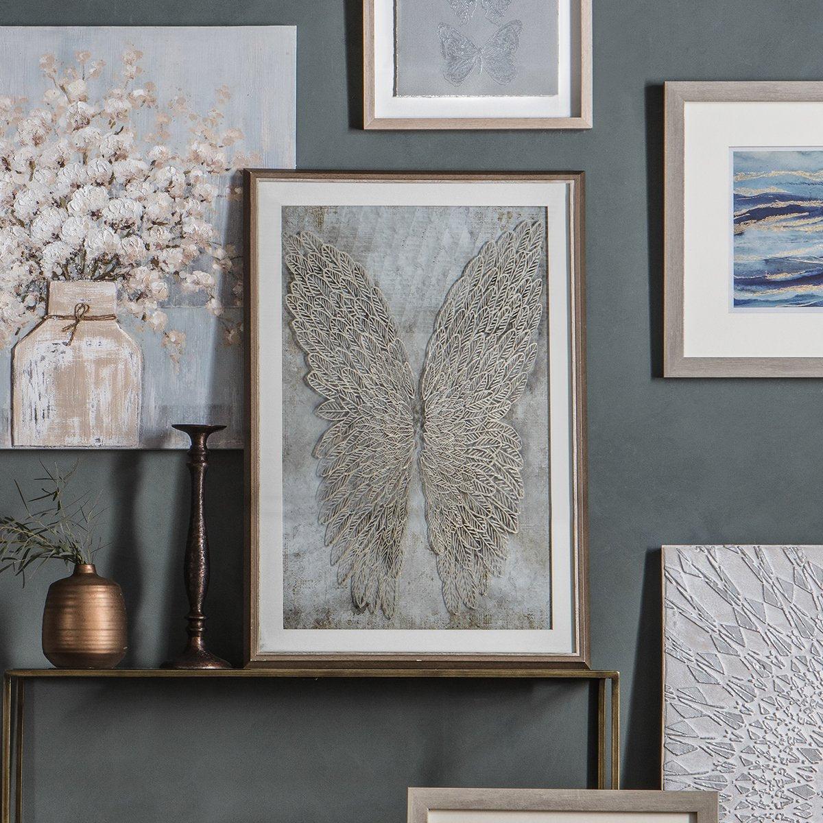 If you have been searching for a unique piece of framed art for a lounge, dining area, kitchen, or office then you have found it in the form of this striking Golden Wings framed art piece. It’s just waiting to send the style of your interiors soaring with its delicate beauty and sophisticated tones. This is a supremely detailed piece that draws the eye with its glistening intricacies. It showcases the beauty of nature with a gleaming golden sheen that can enhance all manner of colour schemes. Dimensions: H:94.5 x D:3.5 x W:65 cm. Material: PS, Canvas. Orientation: Portrait. Fixing Type: D-Ring