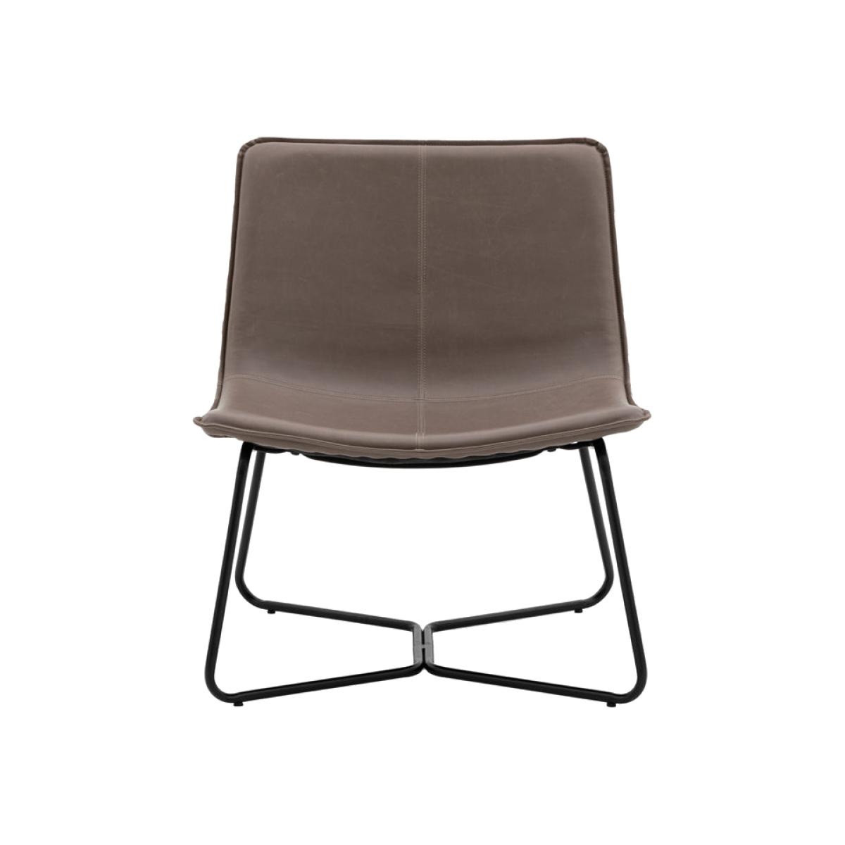 This contemporary occasional chair embodies both comfort and style. Its chic design features a curved seat, upholstered in faux leather, and sleek black metal frame. It is available in two other colours, and matching dining chairs and stools are available. Dimensions: H: 75.5 x W: 65.5 x D: 67.5 cm Materials: Iron, Plywood, PU, Polyfibre, Foam Assembly Required:Leg / Foot Only Care Instructions:Spot clean only. No harsh abrasives or cleaners