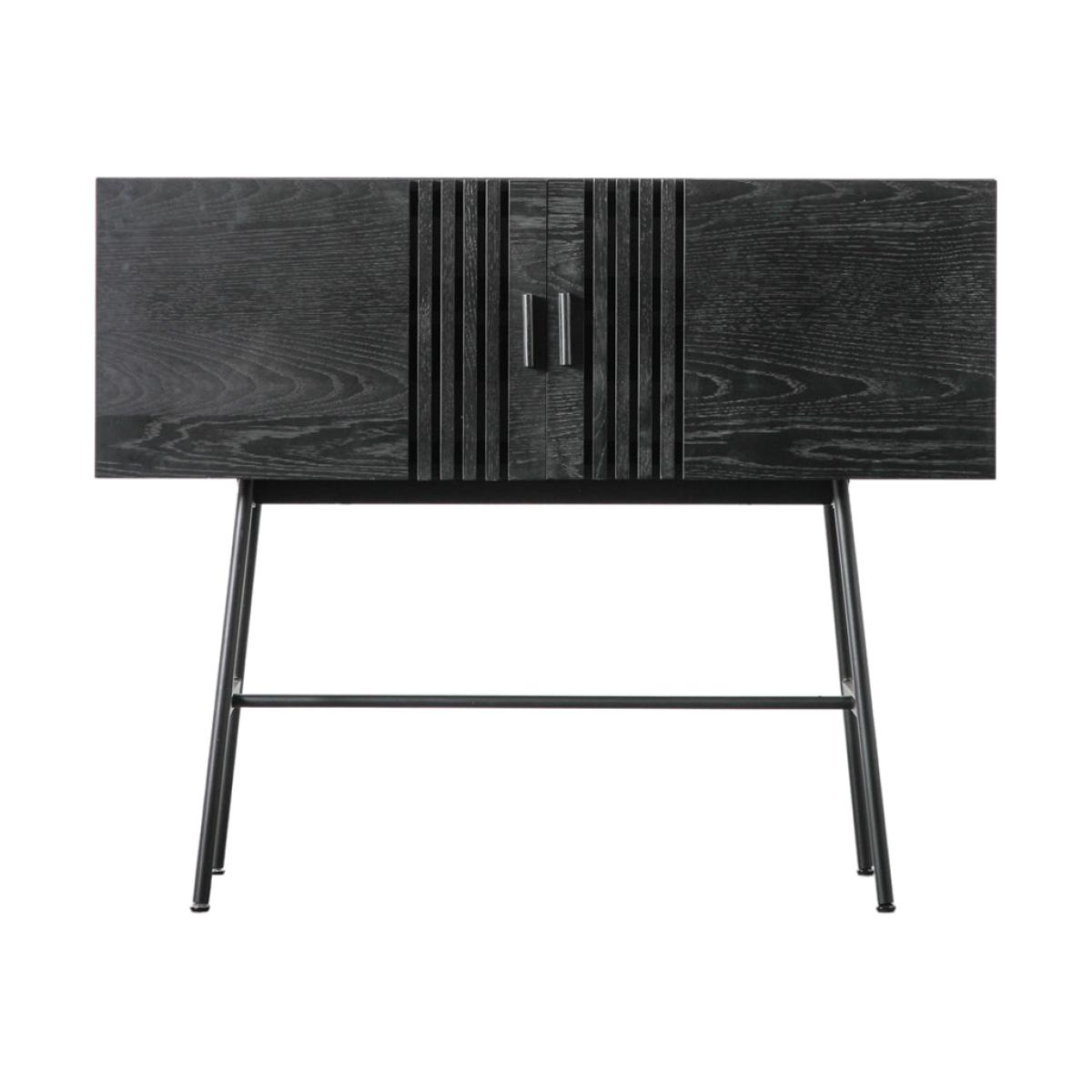 This stunning 2 door sideboard offers a striking contemporary look, with the slatted design on the doors adding interest. Crafted using solid oak for the slats and oak veneers, the matt black finish beautifully shows the grain of the wood and pairs perfectly with the matt black metal legs. Matt black solid oak handles add the finishing touch. Internally, each cupboard has an adjustable shelf for added practicality. The sideboard is part of a collection which offers a selection of cabinets. The collection is part of our Packed-Flat Design Project, offering easy delivery to any room in any property, whilst reducing the packaging needed. Easy assembly is required, but all the tools needed are supplied. Additional Information