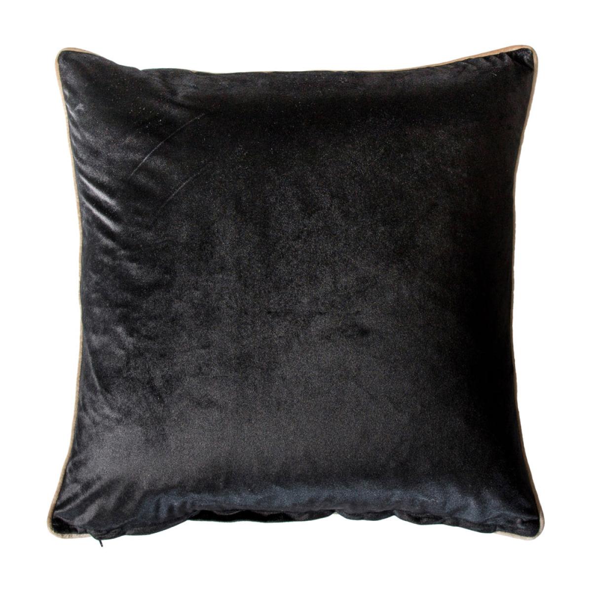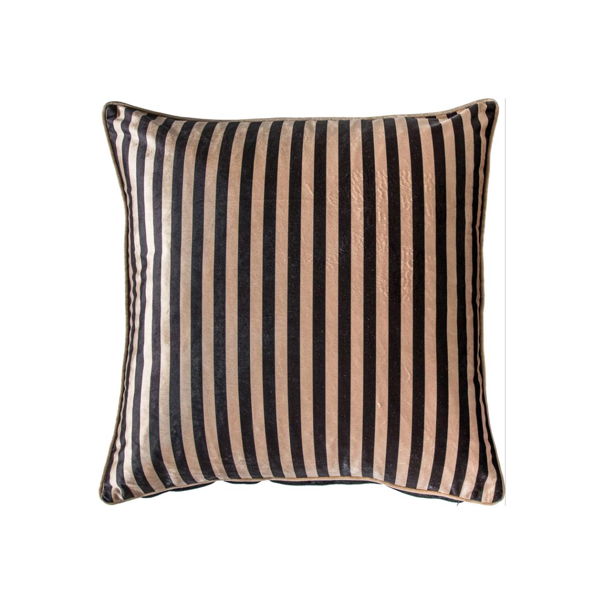 Sumptuous cushion in striped black and gold velvet with contrast piping, perfect for adding a luxurious and comfortable feel to a sofa, chair or bed.