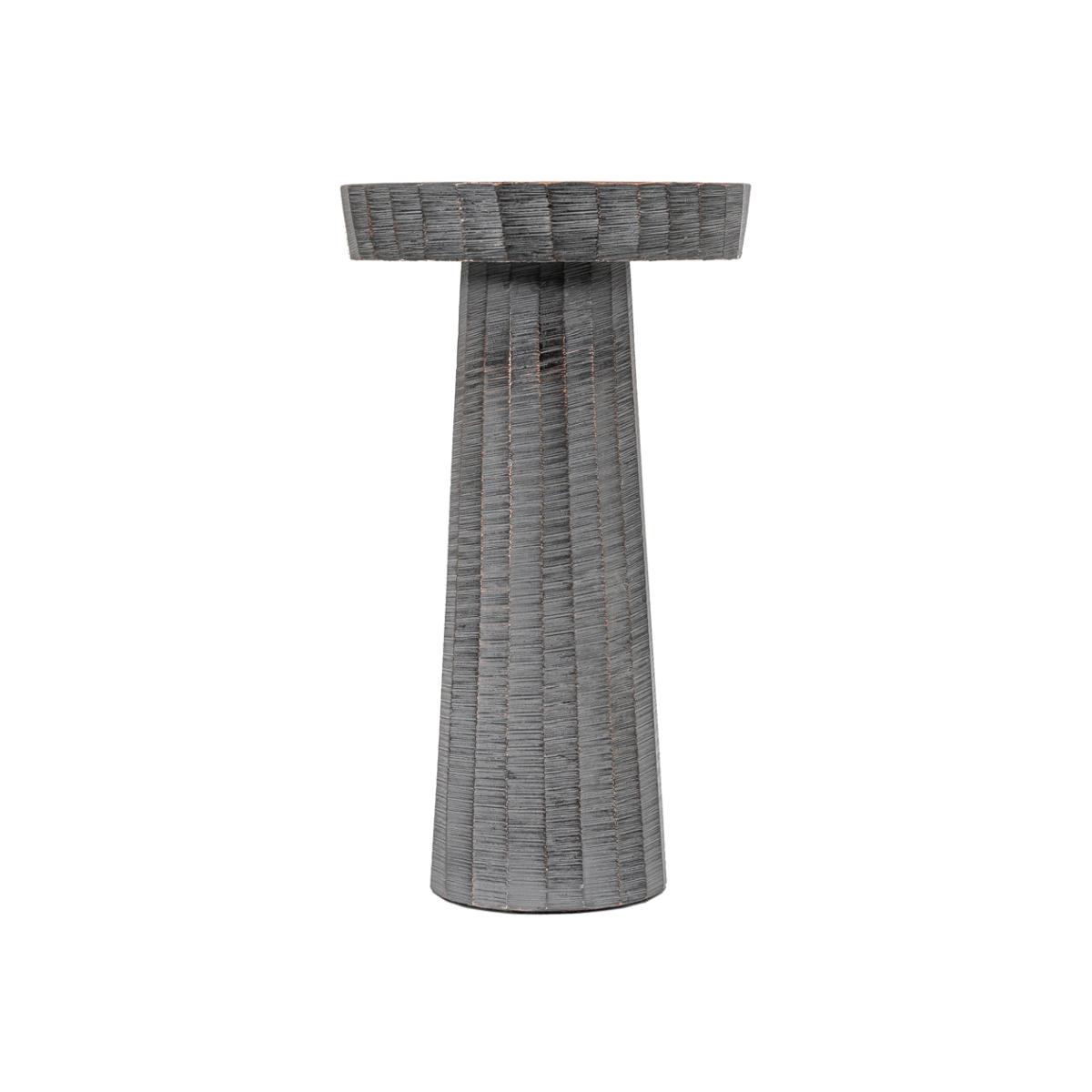 This aluminium candlestick feels bold and modern. The rich grey colour and linear pattern adding a contemporary touch to your space. Candle not included. Dimensions: H: 19.5 x W: 11 x D: 11 cm Materials: Aluminium Assembly Required: No Care Instructions: Clean with a soft dry cloth