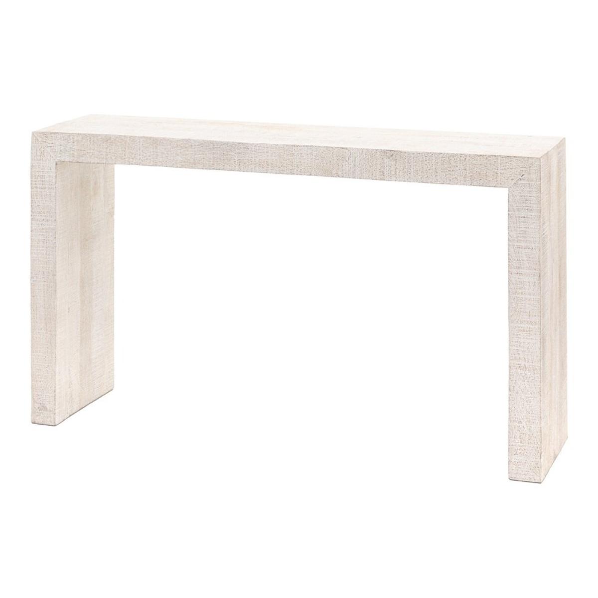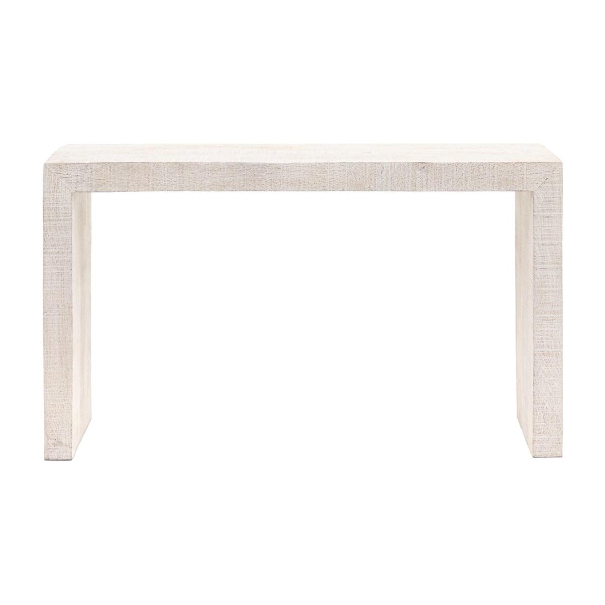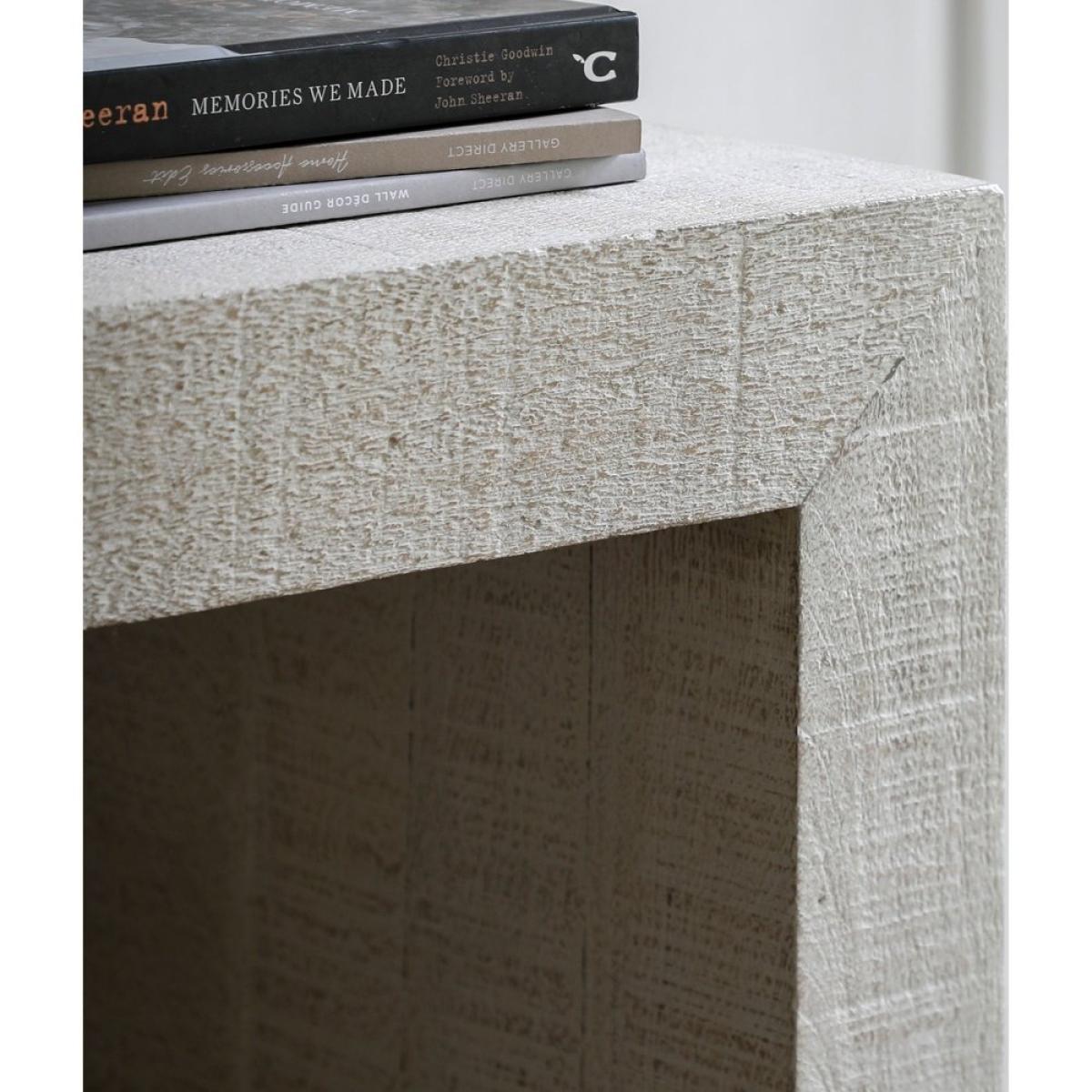 This lovely console table will add a contemporary rustic look to a room. It is cleverly designed to look like solid blocks of cross-sawn timber, but is actually produced using architectural veneers for stability and practicality. The whitewash finish enhances the design. Also available in a dry weathered finish. Coordinating pieces available. Additional Information